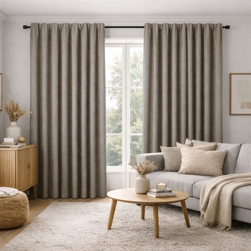 Ein modernes und zeitloses Textilvorhang aus Polyester, das leicht zu pflegen und aufzuhängen ist. Neben der praktischen Anwendung verleiht ein schön gewebter Stoffvorhang Ihrem Zuhause auch einen Hauch von ästhetischer Wärme. Der dicke Vorhang ist dicht gewebt, was ihn lichtdämpfend macht, ohne 100% Verdunkelung zu sein. Er eignet sich daher gut für Wohnzimmer, Esszimmer, Schlafzimmer und andere Orte, an denen Design und Praktikabilität zusammen funktionieren sollen.
