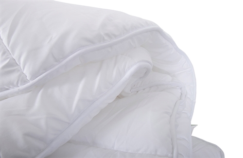 Die Faserfüllung der Decke ist in Kassetten aufgeteilt. Die Fasern selbst sind so hergestellt, dass sie den Eigenschaften einer Daunendecke ähneln. Durch die Kanäle in der Decke wird sichergestellt, dass die Fasern gleichmäßig verteilt sind und ohne Kältebrücken isolieren. Ein großer Vorteil einer Faserbettdecke ist ihre einfache Pflege. Die Faserbettdecke hat eine dichte Struktur und kann immer wieder, auch bei hohen Temperaturen, gewaschen werden. Das gibt dir eine langlebige, solide und hygienische Decke. Kurz gesagt: Eine hochwertige Decke, die langlebig und pflegeleicht ist.