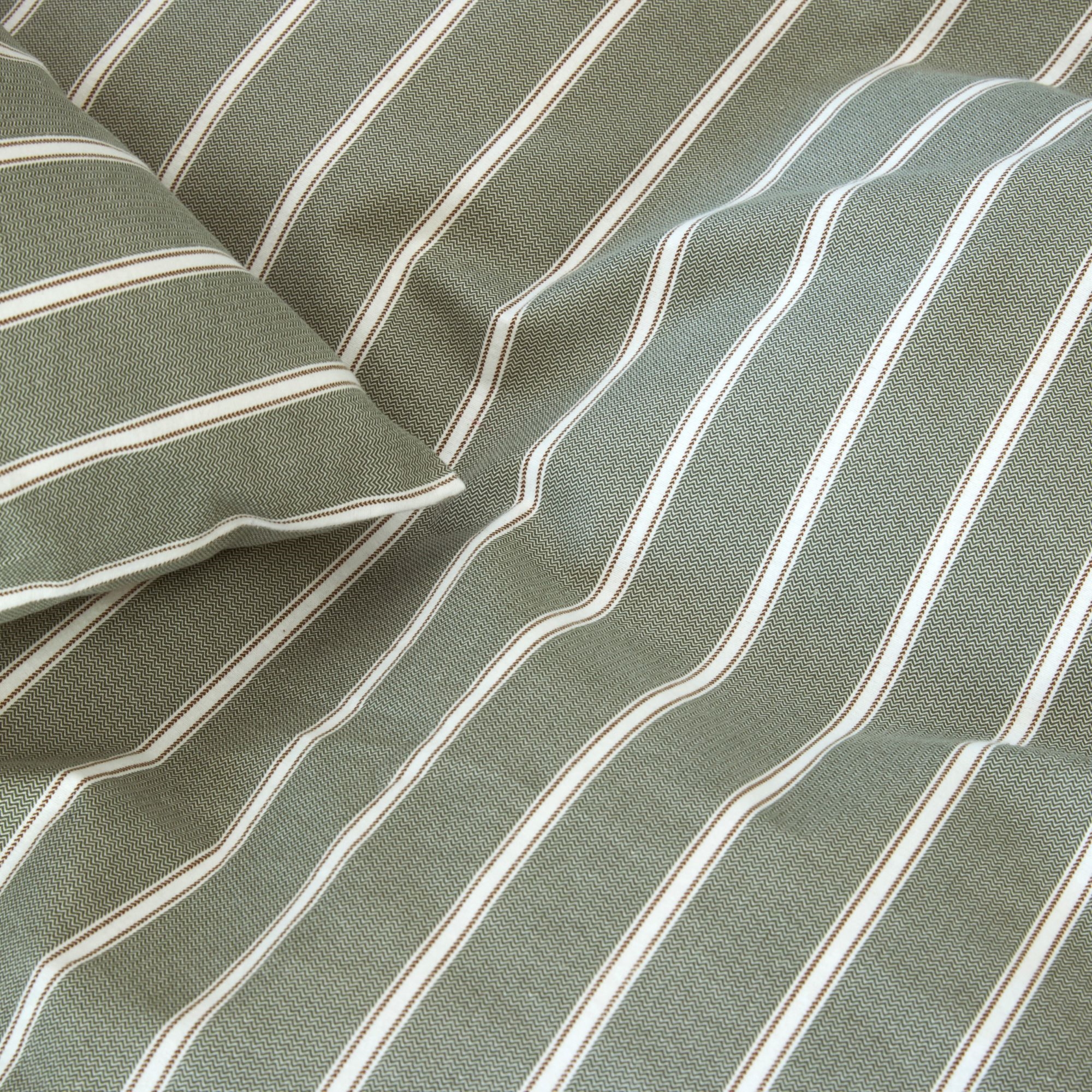 Startseite »Bettwäsche » Einzelne Bettwäsche » Einzelne Bettwäsche 140x200 cm Flanell-Bettwäsche 140x200 cm - Grün gestreiftes Bettwäsche-Set - 100% Baumwollflanell - Henning Høie of Scandinavia Bettwäsche 100 % Flanell Sparen30% Høie Of Scandinavia 68,4947,99EURSpar 21,- Nur noch wenige auf Lager Anzahl In den Warenkorb Mehr dazu unter: Høie Of Scandinavia Artikelnummer:8372-1 Lesen Sie unseren Bettwäsche-Guide Sehen Sie unsere große Auswahl an Spannbettlaken Sehen Sie unsere große Auswahl an Decken 140x200 Hast du Fragen zum Produkt? Atmungsaktiv und angenehmExtra weich und warmRobuste Baumwolle Deckenbezug: 140x200 cm Kissenbezug: 60x63 cm Material: 100% Baumwollflanell Webart: 220TC (Fadenzahl = Anzahl der Fäden pro Quadratzoll) Farbe: Grün mit Streifen Design: Henning Marke: Høie of Scandinavia Verschluss: Deckenbezug mit Reißverschluss, Kissenbezug mit Knöpfen Waschbar: 60° Trocknergeeignet: Ja Bügelgeeignet: Ja Zertifizierung: EASY CARE behandelt, was bedeutet, dass es nach dem Waschen nicht knittert Zertifizierung: GREEN by STANDARD 100 by OEKO-TEX® (M2AMSTPZ2). Ihre Garantie, dass das Produkt frei von gesundheitsschädlichen Chemikalien ist. Weiches und hochwertiges Bettwäsche-Set aus 100% Baumwollflanell. Das einzigartige Gefühl von Flanell entsteht, wenn die Oberfläche der feinen Baumwolle gebürstet wird. Dadurch wirkt Flanell warm und weich. Die Bettwäsche besteht aus besonders feiner Baumwolle, die für ihre Weichheit und hohe Strapazierfähigkeit bekannt ist. Flanell-Bettwäsche von Høie besteht aus 100% Baumwollflanell, der für seine weiche, leicht aufgeraute und flauschige Oberfläche bekannt ist. Die Baumwollfasern werden auf der Oberfläche gebürstet, was eine extra weiche und flauschige Oberfläche schafft. Diese Oberfläche verleiht der Flanell-Bettwäsche ihre charakteristische und bekannte Weichheit und Wärme, die zu einem angenehmen und behaglichen Schlaferlebnis beiträgt. Besonders an kühlen Nächten ist die Bettwäsche ein Favorit, da 100% Baumwollflanell atmungsaktiv ist und gleichzeitig gut Wärme speichert. Die Bettwäsche ist OEKO-TEX zertifiziert. Das ist Ihre Garantie, dass die Bettwäsche getestet und frei von schädlichen Stoffen ist, zudem ist die Bettwäsche allergikerfreundlich. Høie Bettwäsche ist außerdem Easy Care behandelt, für weniger Knitter und bessere Form nach dem Waschen. Easy Care macht Ihre Bettwäsche besonders komfortabel und leicht zu bügeln. Frischen Sie Ihr Schlafzimmer mit diesem schönen und luxuriösen Bettwäsche-Set auf. Nutzen Sie gleichzeitig die Gelegenheit, Ihren Schlafkomfort durch ein neues, weiches Qualitäts-Spannbettlaken zu erhöhen. Entdecken Sie hier unser großes Sortiment an Qualitäts-Spannbettlaken Høie ist eine skandinavische Marke, die Tradition mit Innovation verbindet. Das Unternehmen besteht seit 1850 und hat im Laufe der Jahre die skandinavische Textil- und Designwelt mitgeprägt und weiterentwickelt. Bettwäsche von Høie ist Alltagsluxus, den sich jeder verdient. Zurück zu Einzelne Bettwäsche 140x200 cm