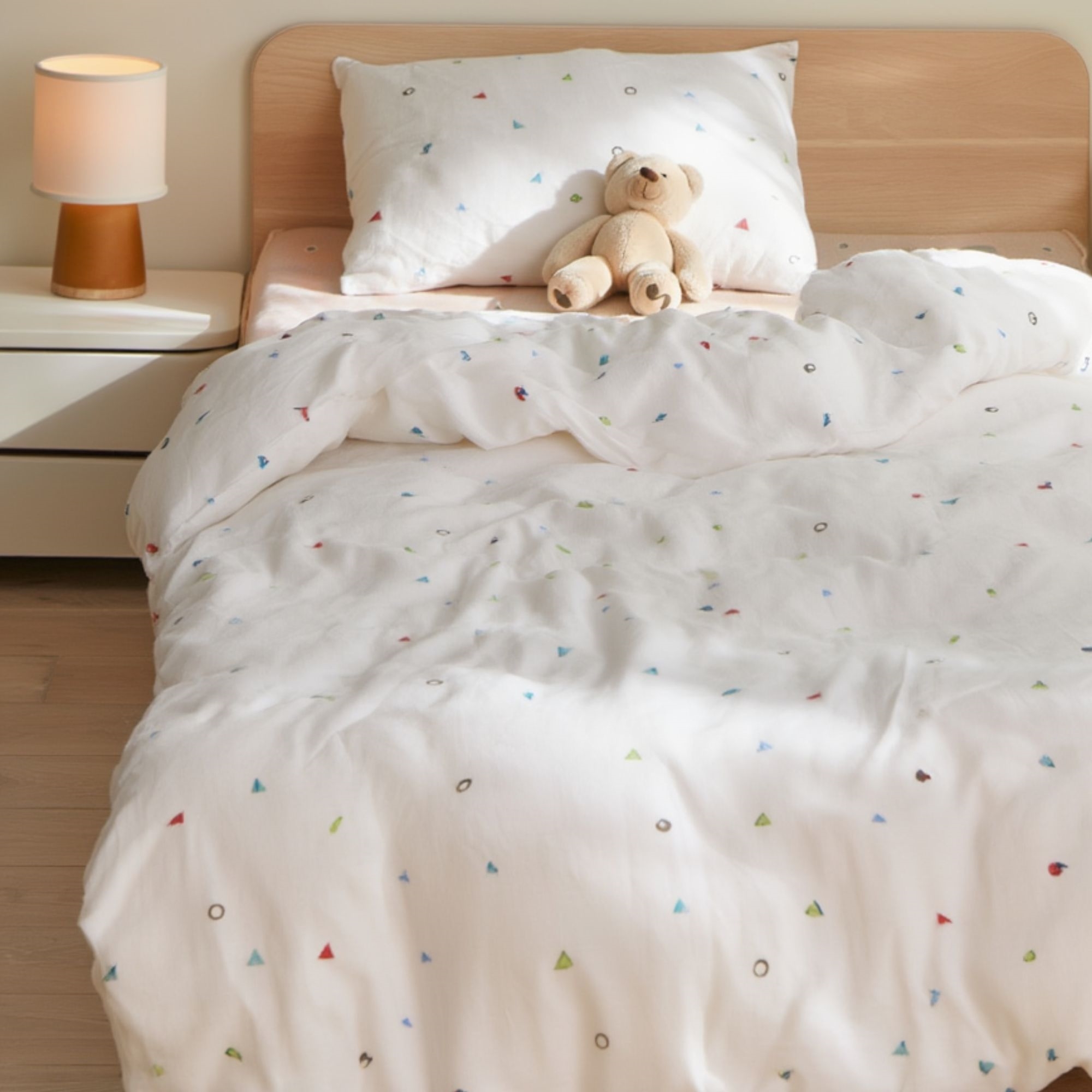 Das Bettwäsche-Set ist aus 100% weicher Baumwolle gefertigt, die atmungsaktiv ist und sich angenehm auf der Kinderhaut anfühlt. Die natürlichen Eigenschaften der Baumwolle helfen, die Temperatur in der Nacht zu regulieren, sodass Ihr Kind das ganze Jahr über einen komfortablen und ruhigen Schlaf genießt.