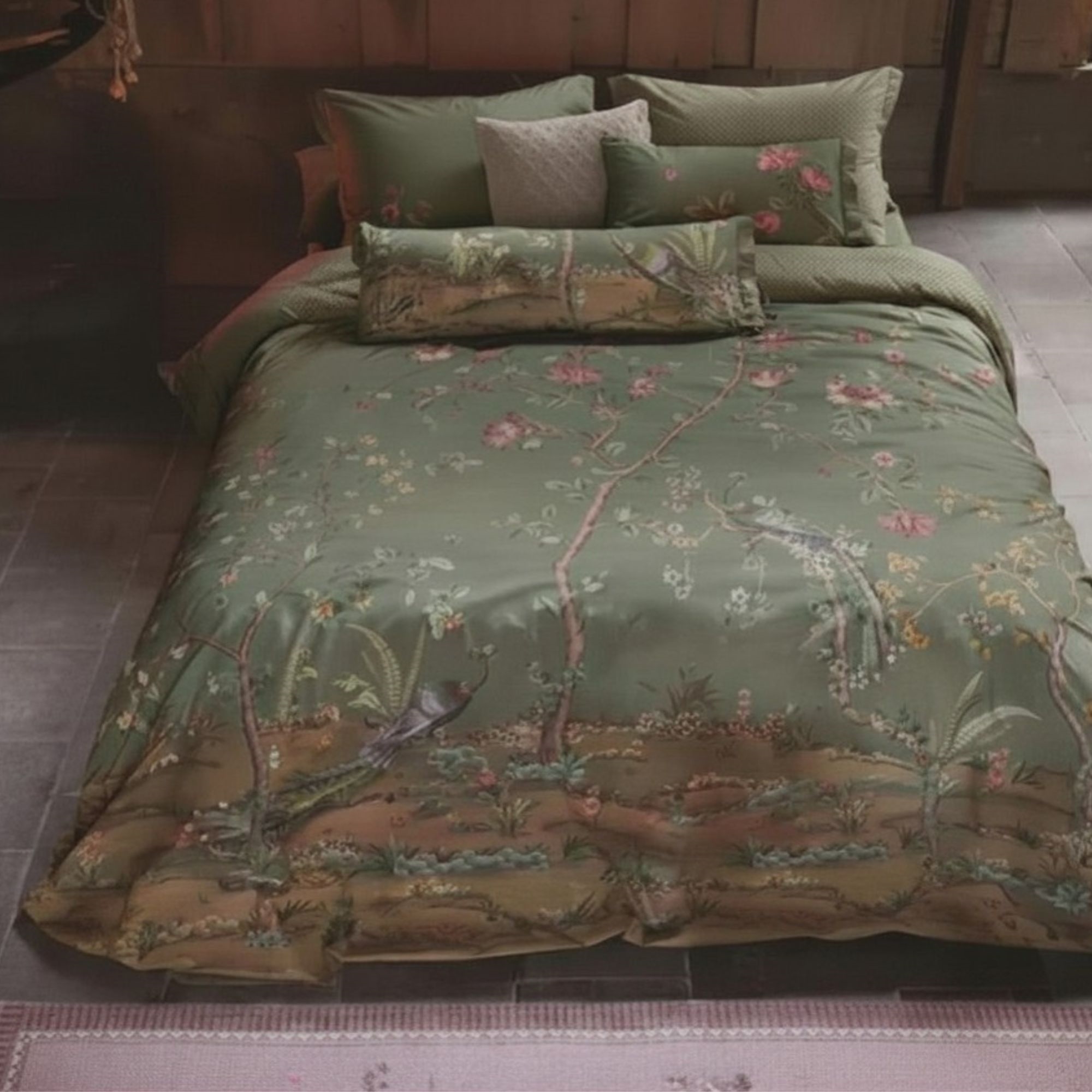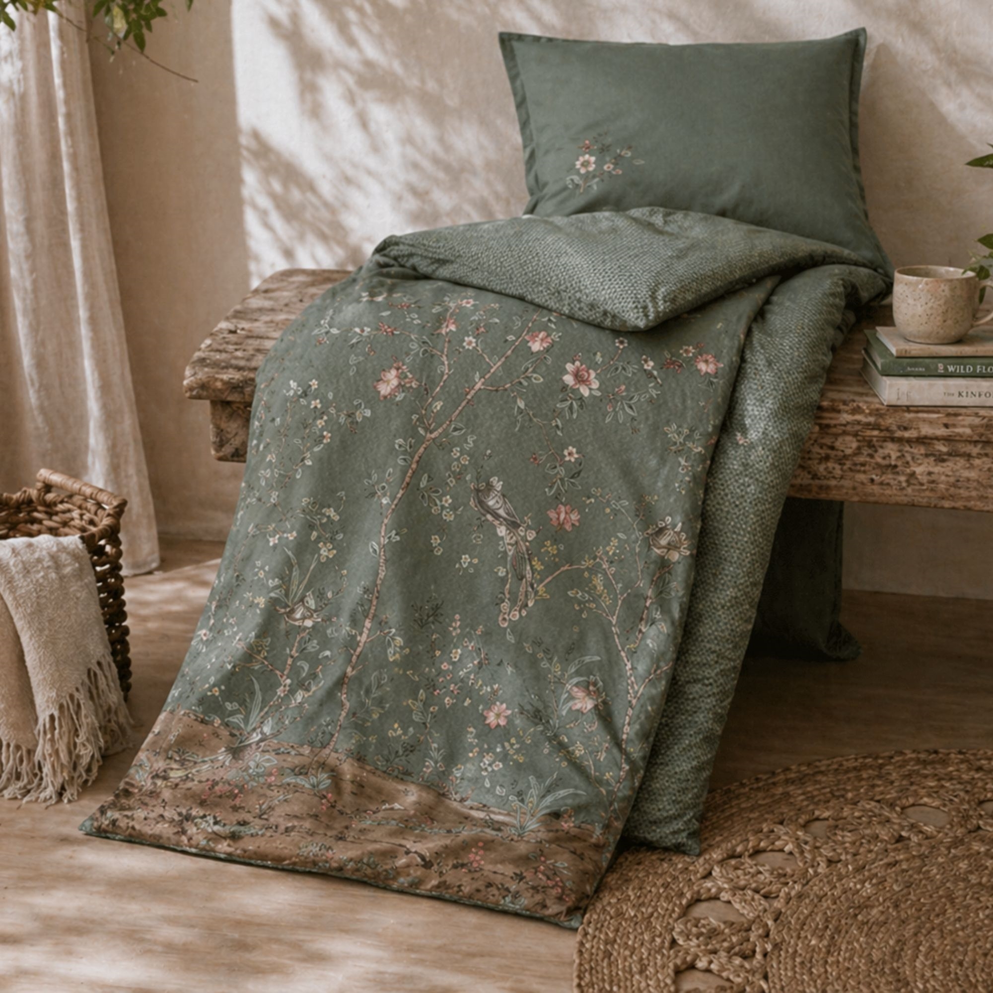Startseite »Bettwäsche » Einzelne Bettwäsche » Einzelne Bettwäsche 140x200 cm Geblümte Bettwäsche 140x200 cm - Grün wendbares Bettwäsche-Set aus 100% weicher Baumwolle - Okinawa grün - Pip Studio Bettwäsche Sparen22% Pip Studio 122,4995,49EURSparen 27,- Kostenloser Versand für diesen ArtikelAuf Lager Anzahl In den Warenkorb Mehr dazu unter: Pip Studio Artikelnummer:248111-1 Lesen Sie unseren Bettwäsche-Guide Sehen Sie unsere große Auswahl an Spannbettlaken Sehen Sie unsere große Auswahl an Decken 140x200 Hast du Fragen zum Produkt? OEKO-TEX Zertifizierung100% weiche BaumwolleWeiche und hochwertige Qualität Deckenbezug: 140x200 cm Kissenbezug: 60x63 cm Material: 100% weiche Baumwolle Webart: Extra feiner 200TC Percale (Thread count = Anzahl der Fäden pro Quadratzoll) Farbe: Grün mit Blumen Design: Okinawa Marke: Pip Studio Verschluss: Decken- und Kissenbezug mit Knöpfen Waschbar: 60° Trocknergeeignet: Ja Bügelgeeignet: Ja Zertifizierung: STANDARD 100 by OEKO-TEX® (11-47893 Shirley). Ihre Garantie, dass das Produkt frei von gesundheitsgefährdenden Chemikalien ist. Dieses Bettwäsche-Set ist aus 100% Baumwollpercale gewebt, was eine extra Weichheit bei guter Strapazierfähigkeit bietet. Außerdem ist die Bettwäsche 100% durchgefärbt, was bedeutet, dass die Farbe während der Produktion in die Baumwollfasern eingebunden wird. Das Ergebnis ist eine unglaublich hohe Farb- und Waschbeständigkeit. Das Bettwäsche-Set ist OEKO-TEX® zertifiziert. Die Zertifizierung stellt sicher, dass das Produkt keine gesundheitsgefährdenden Chemikalien enthält und unter fairen Bedingungen hergestellt wurde, sodass Sie nachts beruhigt schlafen können – und wir kümmern uns auch gut um die Umwelt. Frischen Sie Ihr Bett und Schlafzimmer mit einem schönen und hochwertigen Bettwäsche-Set wie diesem auf. Nutzen Sie gleichzeitig die Gelegenheit, maximalen Schlafkomfort zu sichern, indem Sie ein neues weiches Spannbettlaken von hoher Qualität hinzufügen. Hier finden Sie unser großes Sortiment an Qualitäts-Spannbettlaken Pip Studio stammt aus den Niederlanden, was sich auch in den einzigartigen Designmustern widerspiegelt. Die Designer von Pip Studio lassen sich beispielsweise von mehreren hundert Jahre alten Fliesen oder Tapeten inspirieren. Pip Studio ist bekannt für seine fröhlichen Farben und romantischen Stil. Mit Liebe zum Detail und vielen schönen Farben ist Pip Studio Bettwäsche perfekt, um Ihrem Alltag etwas Farbe zu verleihen. Gleichzeitig sorgt die hochwertige Qualität für einen angenehmen Schlaf. Zurück zu Einzelne Bettwäsche 140x200 cm