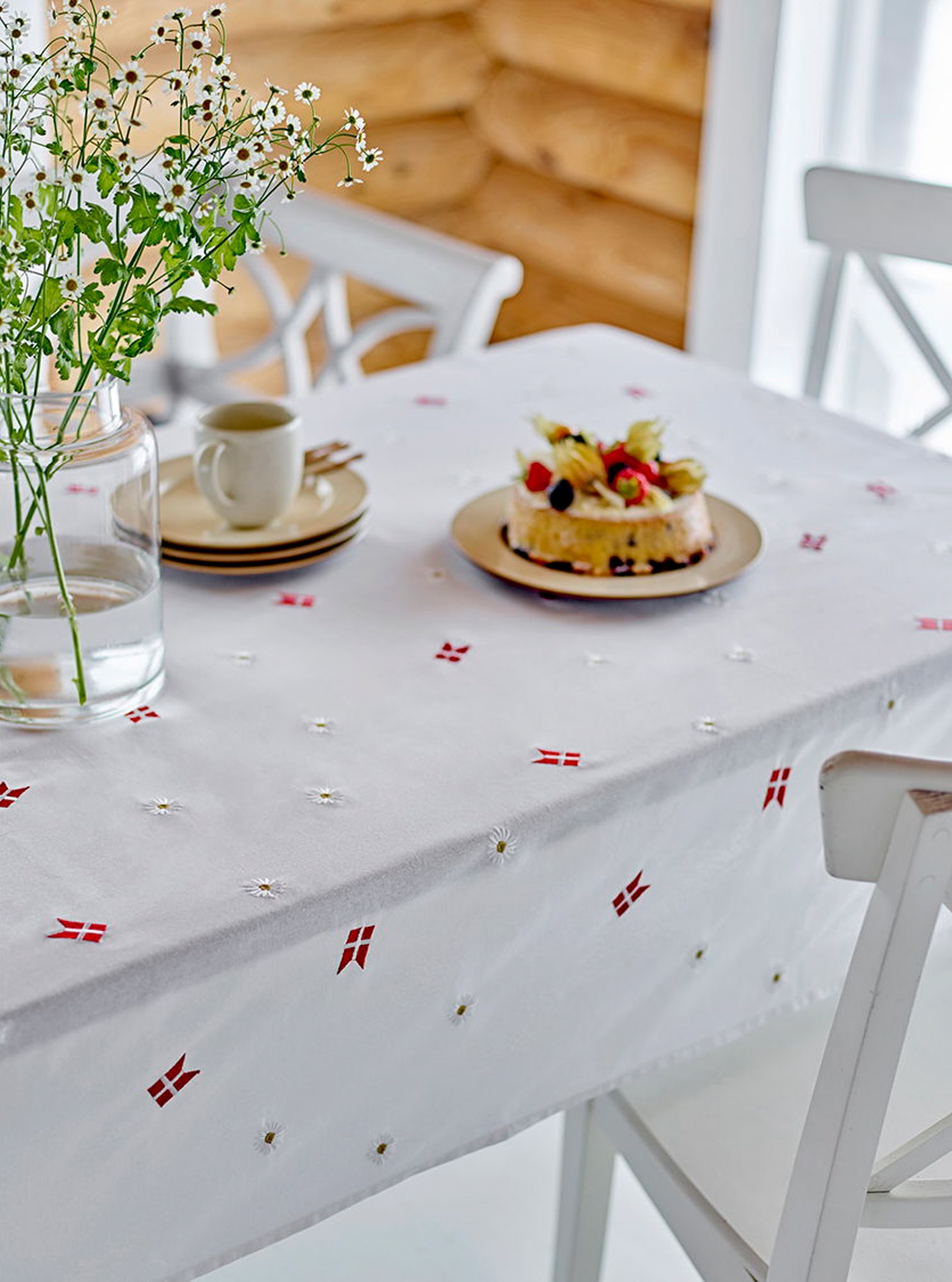 Schaffen Sie eine unvergessliche und festliche Tischdekoration mit dieser schönen, langen Tillykke-Tischdecke von Södahl. Das elegante Design mit gestickten dänischen Flaggen und Gänseblümchen bringt Freude, Tradition und Gemütlichkeit in Ihr Zuhause - perfekt für besondere Momente im Leben.