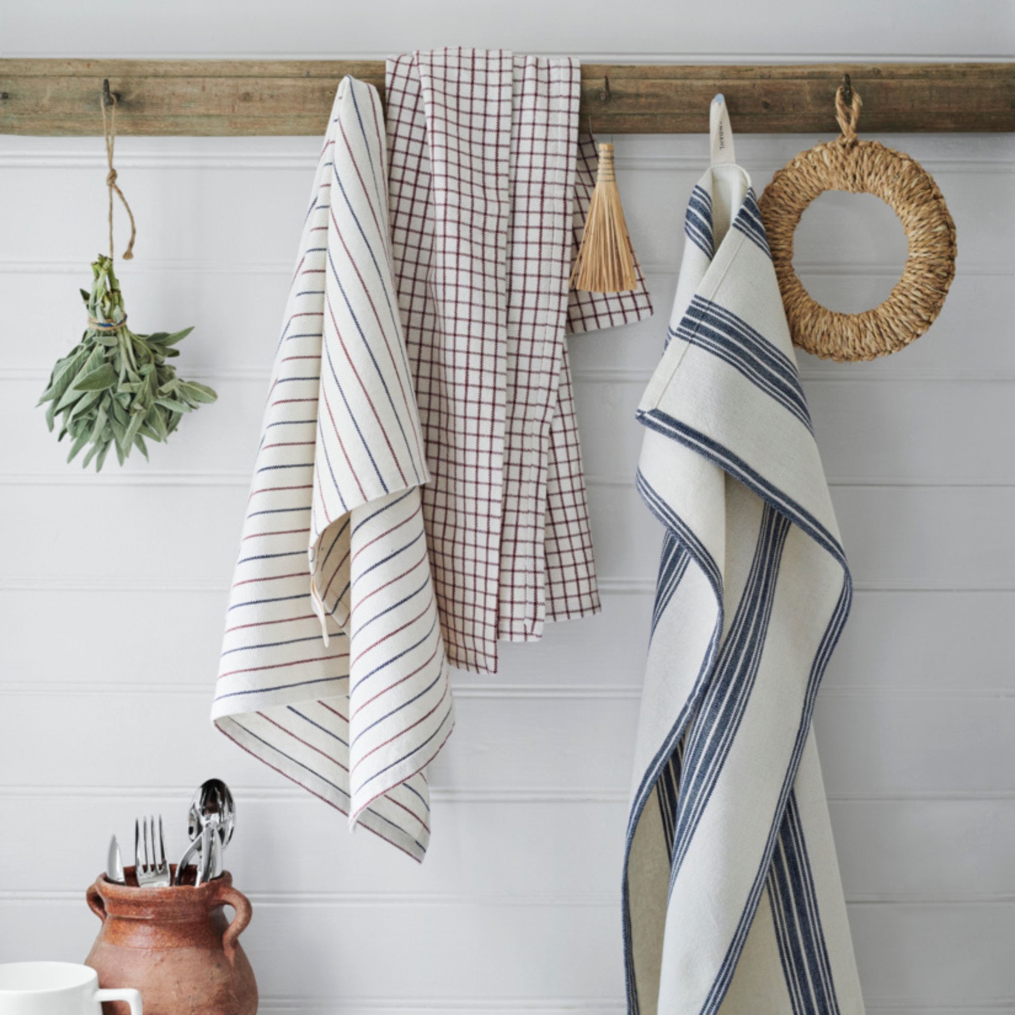 Startseite »Inneneinrichtung » Für den Tisch » Geschirrtücher Geschirrtuch - 50x70 cm - Gran Rosendahl - Blau/Terrakotta Rosendahl Guter Preis:6,99EUR Auf Lager Anzahl In den Warenkorb Mehr dazu unter: Rosendahl Artikelnummer:21405 Hast du Fragen zum Produkt? Hohe Saugfähigkeit für effektives AbtrocknenGeeignet für Abwasch, Abtrocknen und ReinigungWaschbar bei 60 °C für optimale Hygiene Typ: Geschirrtuch Material: 75% recycelte Baumwolle und 25% recyceltes Polyester Größe: 50x70 cm Farbe: Blau/Terrakotta Serie: Gran Marke: Rosendahl Waschbar: 60 °C Trockner: Ja Zertifizierung: GRS-zertifiziert durch Control Union (CU1026087). Ihre Garantie für recycelte Materialien und eine verantwortungsvollere Produktion. Geschirrtuch 50x70 cm - Rosendahl Gran Fügen Sie Funktionalität und Stil zu Ihrer Küche hinzu mit diesem feinen Geschirrtuch von Rosendahl Textiles. Das minimalistische Design mit schmalen Streifen in Blau und Terrakotta schafft einen modernen und nordischen Ausdruck, der perfekt in die reduzierte Küche passt. Das Geschirrtuch ist hergestellt aus einer Mischung aus recycelter Baumwolle und Polyester, was es zu einer umweltfreundlicheren Wahl macht, ohne Kompromisse bei Qualität und Funktionalität einzugehen. Die spezielle Webart verleiht dem Geschirrtuch eine leichte, raue Struktur, die sowohl ansprechend aussieht als auch hohe Saugfähigkeit und schnelles Trocknen garantiert. Die feinen Streifen kombiniert mit dem sandfarbenen Grund schaffen ein ruhiges und elegantes Erscheinungsbild, das in die meisten Küchen passt. Das Produkt ist GRS-zertifiziert, was Ihre Garantie für recycelte Materialien und eine verantwortungsvollere Produktion mit Fokus auf Umwelt und Ressourcen ist. Sehen Sie hier alle unsere Geschirrtücher. Rosendahl Rosendahl ist eine ikonische dänische Marke, die zeitloses Design mit hoher Funktionalität und Qualität verbindet. Mit Wurzeln in der skandinavischen Designtradition schafft Rosendahl Produkte, die sowohl ästhetisch als auch praktisch im Alltag sind. Die Marke ist bekannt für ihren einfachen und klaren Ausdruck, bei dem saubere Linien und durchdachte Details Hand in Hand mit langlebigen Materialien gehen. Das Sortiment ist breit und reicht von Küchentextilien und Wohnaccessoires bis hin zu Designklassikern. Mit Fokus auf verantwortungsvolle Produktion und modernes Leben entwickelt Rosendahl Produkte, die perfekt in das nordische Zuhause passen, wo Funktion, Qualität und Design im Mittelpunkt stehen. Sehen Sie hier das gesamte Rosendahl-Sortiment Zurück zu Geschirrtücher