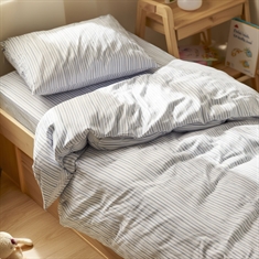 Schaffen Sie eine helle und ruhige Atmosphäre im Kinderzimmer mit dieser schönen Baby-Bettwäsche von By Mats in Weiß mit blauen Streifen. Das einfache und nordische Design verleiht einen weichen und harmonischen Ausdruck, der sowohl in moderne als auch in klassische Einrichtungsstile passt.