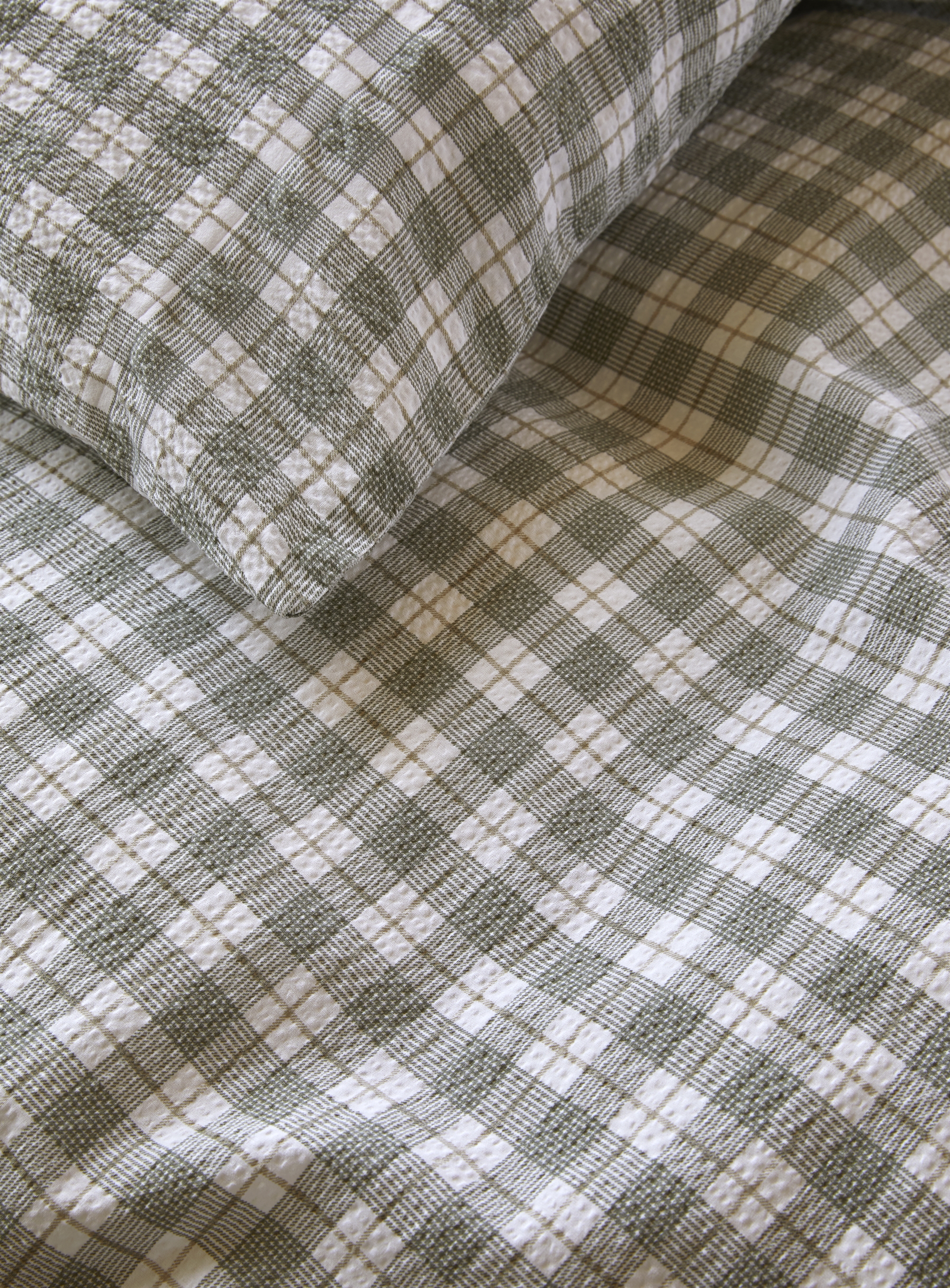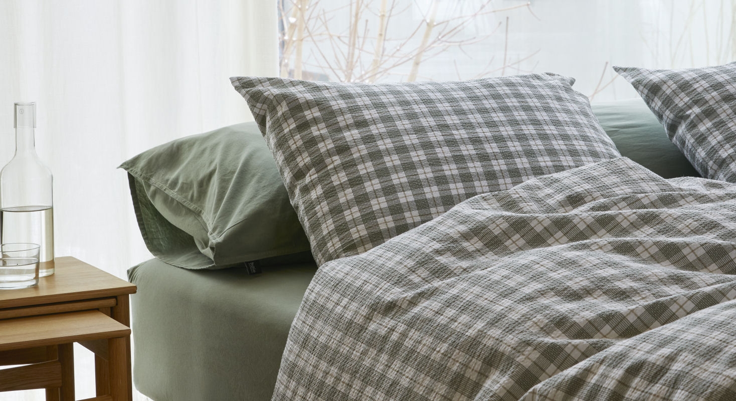 Startseite »Bettwäsche » Einzelne Bettwäsche » Einzelne Bettwäsche 140x200 cm Gewebte Krepp-Bettwäsche 140x200 cm - 100% weiche Baumwolle - Grün kariert - Seersucker-Bettwäsche - Kyrre Høie Of Scandinavia Sparen34% Høie Of Scandinavia 81,9954,49EURSpar 27,- Auf Lager Anzahl In den Warenkorb Mehr dazu unter: Høie Of Scandinavia Artikelnummer:8341-1 Lesen Sie unseren Bettwäsche-Guide Sehen Sie unser großes Sortiment an Laken Hast du Fragen zum Produkt? OEKO-TEX® zertifiziertWeich, leicht und luftigExklusiv luftig gewebter Krepp Bettbezug: 140x200 cm Kissenbezug: 1 Stk. à 60x63 cm Material: 100% weiche Baumwolle - gewebter Krepp Webart: 200TC Seersucker-Bettwäsche (Thread count = Anzahl der Fäden pro Quadratzoll) Farbe: Grün kariert Design: Kyrre gedämpftes Grün Marke: Høie of Scandinavia Verschluss: Bettbezug mit Reißverschluss, Kissenbezug mit Überlappung Waschbar: 60°C Trockner: Ja Bügeln: Nein Zertifizierung: STANDARD 100 by OEKO-TEX® (19.HIN.85821). Ihre Garantie dafür, dass das Produkt frei von gesundheitsschädlicher Chemie ist. Die extra feinen Baumwollfäden erzeugen eine zarte Kreppwebung. Perfekt für alle, die das weiche und knisternde Gefühl lieben. In gewebtem Baumwollkrepp aus 100% Baumwolle entstehen die einzigartigen Lufttaschen in der Webstruktur. Die Kreppstruktur ist im Winter warm und im Sommer kühl und verleiht ein weiches und zugleich knuspriges Gefühl, das Waschgänge für Waschgänge erhalten bleibt. Ein Klassiker, der nicht gebügelt werden muss. Dieses karierte Kyrre-Bettwäsche-Set wird aus 100% weicher Baumwolle mit der Webart Seersucker-Bettwäsche hergestellt, auch genannt Baumwollkrepp. Diese Webart erzeugt den Falt- und Kräuseleffekt und schafft Hohlräume für kleine Lufttaschen im Material, wodurch sich die Bettwäsche leicht, luftig und oft kühler anfühlt als andere Materialarten. Im Sommer wirkt die Bettwäsche luftig, und im Winter spüren Sie die Wärme der weichen Baumwolle — das ist der einzigartige Vorteil dieser schönen Kombination aus Material und Webart. Das Set sollte nicht gebügelt werden, da die Lufttaschen Teil der Webstruktur sind. Bettwäsche mit dieser Webart ist besonders gut für Personen geeignet, die nachts manchmal warm haben; hier kann die Bettwäsche erhöhte Atmungsaktivität und hohe Saugfähigkeit bieten. Kaufen Sie hier einfach Kissenbezüge für Ihre zusätzlichen Kissen Frischen Sie Ihr Bett und Schlafzimmer mit einem schönen und hochwertigen Bettwäscheset wie diesem auf. Nutzen Sie zugleich die Möglichkeit, maximalen Schlafkomfort zu sichern, indem Sie ein neues weiches Spannbettlaken von hoher Qualität hinzufügen. Sie finden unsere große Auswahl an Qualitätslaken hier Høie ist eine skandinavische Marke, die Tradition mit Innovation verbindet. Das Unternehmen existiert seit 1850 und hat im Laufe der Jahre zur Prägung und Entwicklung skandinavischer Textilien und Designs beigetragen. Bettwäsche von Høie ist alltäglicher Luxus, den sich jeder verdient. Zurück zu Einzelne Bettwäsche 140x200 cm