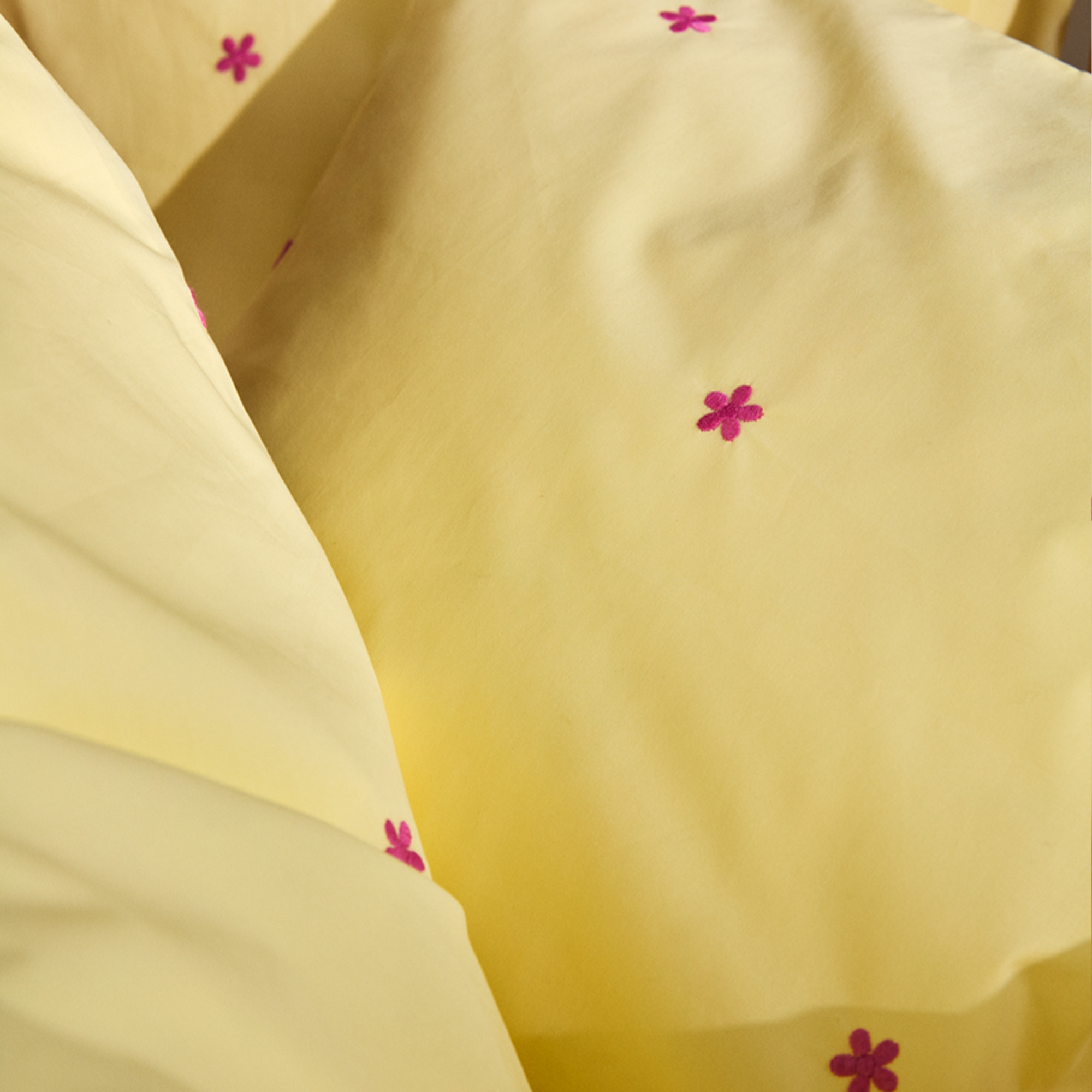 Daisy-Bettwäsche mit Extra-Länge aus Bio-Baumwolle - Gelb mit bestickten Blumen