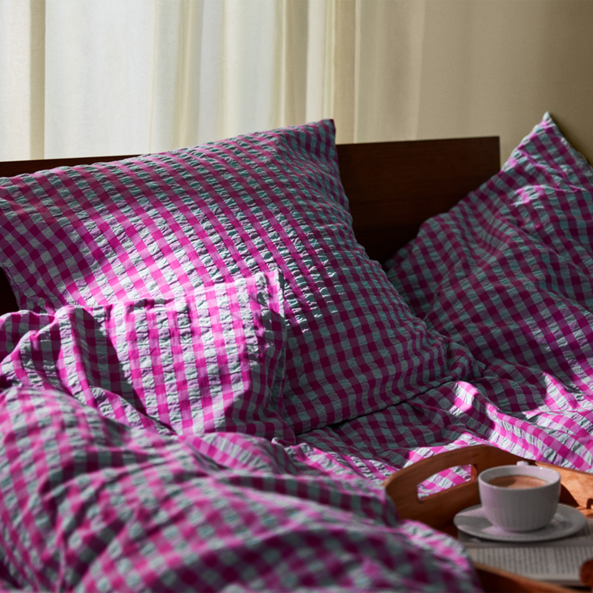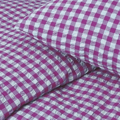 Die weiche Baumwolle kombiniert mit der gekräuselten Struktur vermittelt ein einzigartiges Luxusgefühl. Gleichzeitig ist die Bettwäsche praktisch im Alltag, da sie kein Bügeln erfordert und ihr schönes Aussehen Waschgang für Waschgang behält. Die feinen Karos in Lila verleihen einen ruhigen und stilvollen Look, der sowohl in moderne als auch in klassische Schlafzimmer passt.
