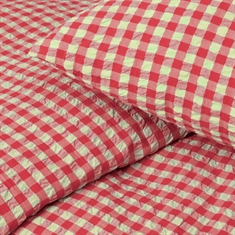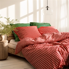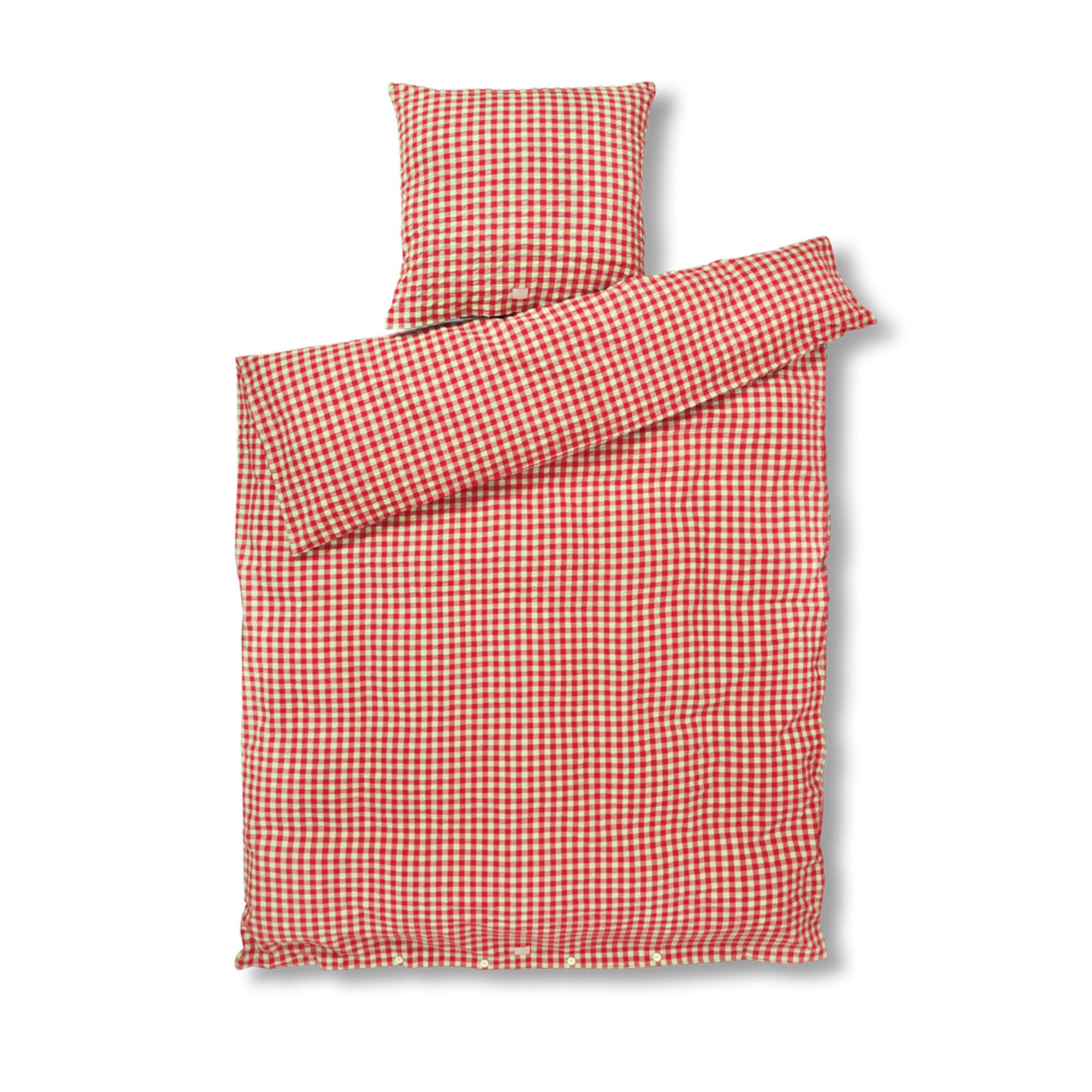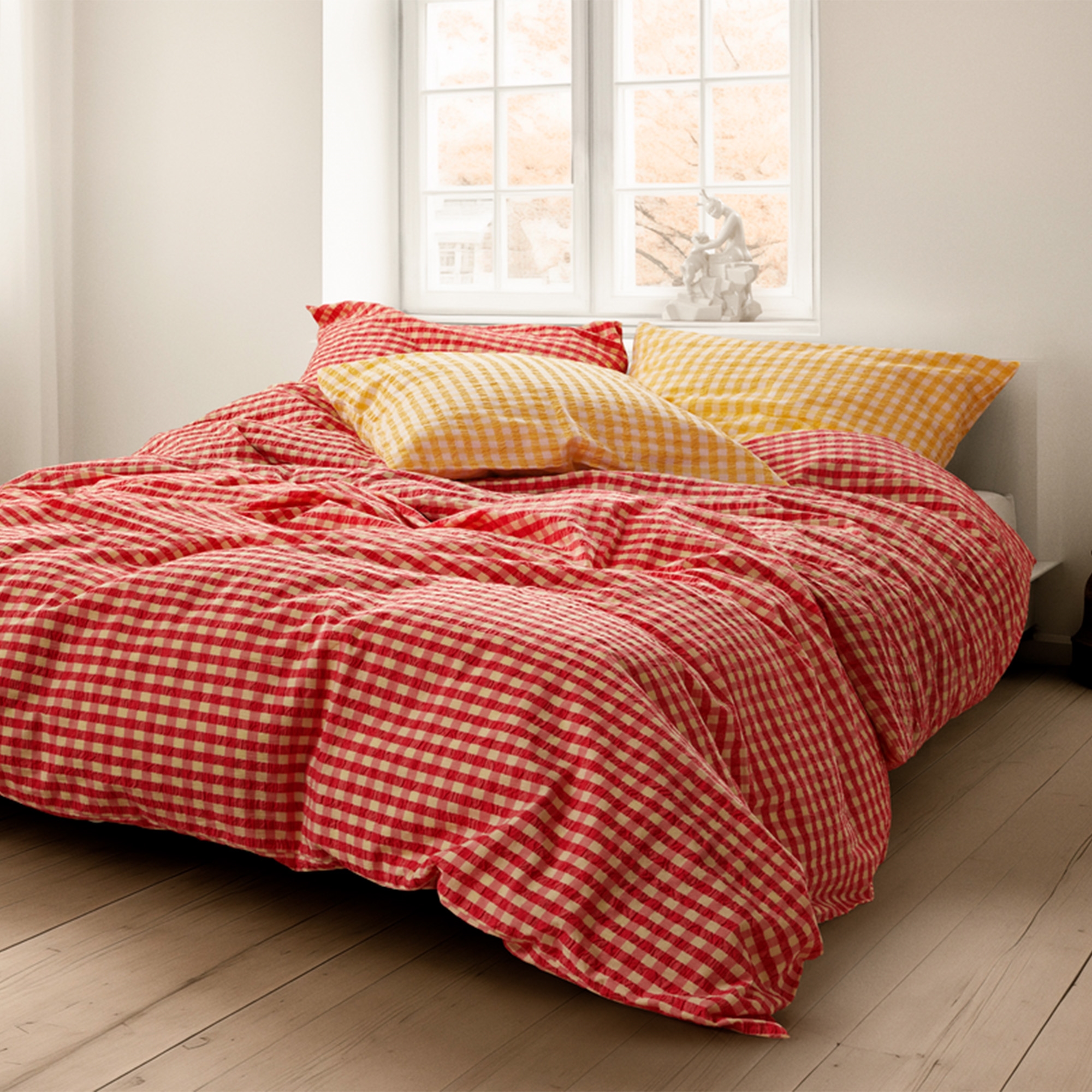 Die weiche Baumwolle in Kombination mit der gekreppten Struktur vermittelt ein einzigartiges Luxusgefühl. Gleichzeitig ist die Bettwäsche praktisch im Alltag, da sie nicht gebügelt werden muss und ihr schönes Erscheinungsbild Waschgang für Waschgang behält. Das feine Karomuster in Rot verleiht ein ruhiges und zeitloses Erscheinungsbild, das sowohl in modernen als auch in klassischen Schlafzimmern passt.