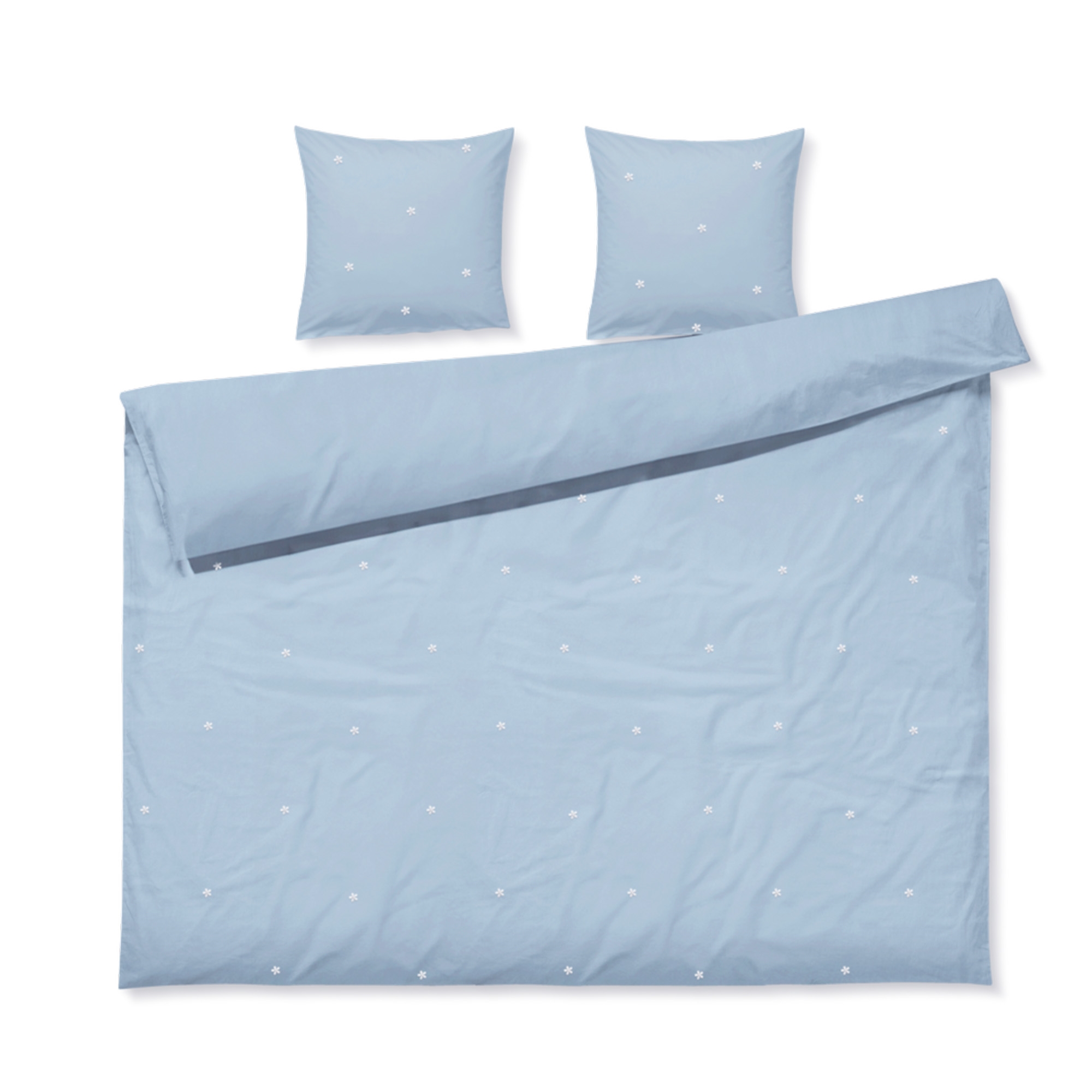 Daisy Doppel-Bettwäsche aus Bio-Baumwolle - hellblau mit bestickten Blumen