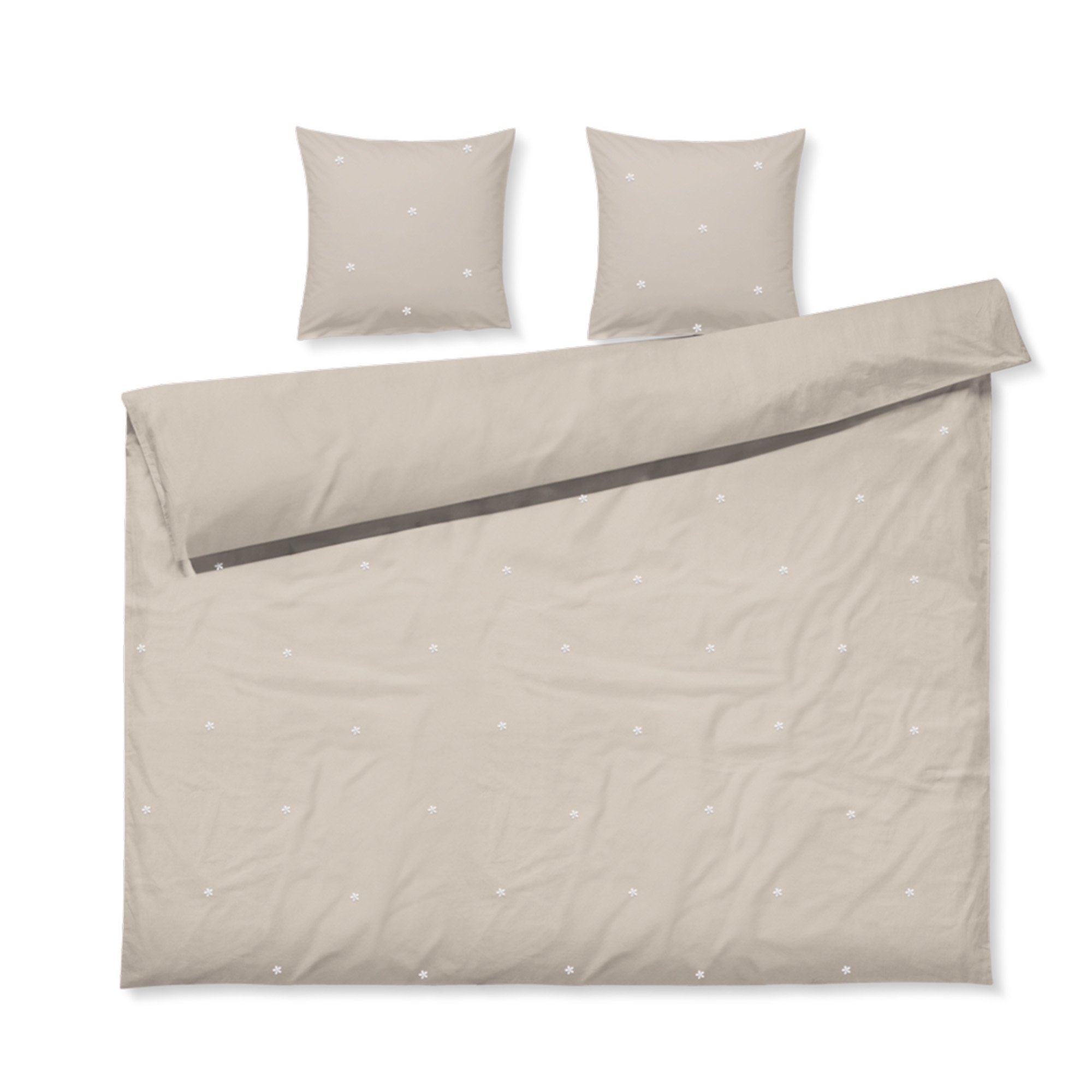 Daisy Doppelbettwäsche aus Bio-Baumwolle - Sand mit bestickten Blumen