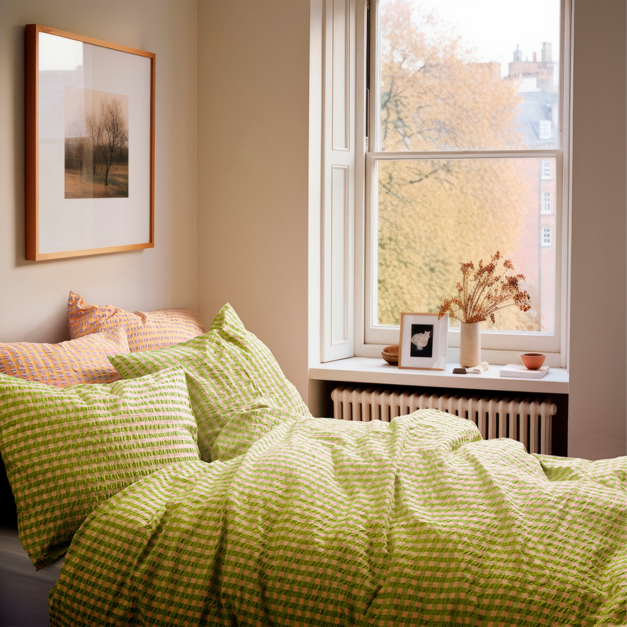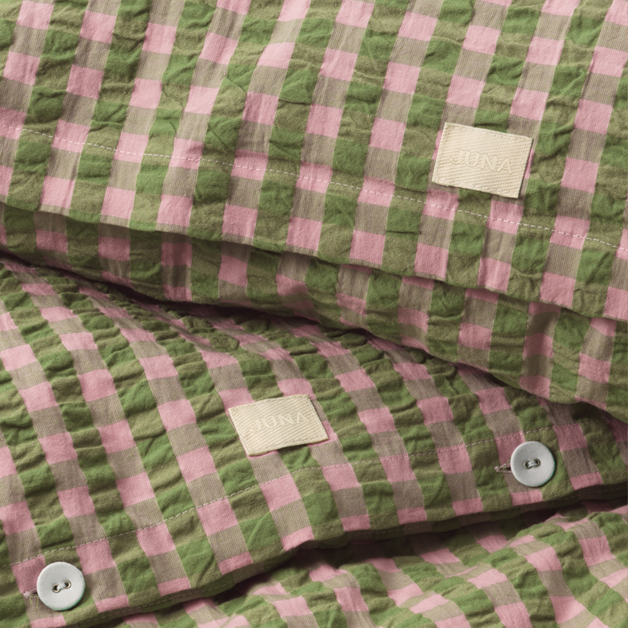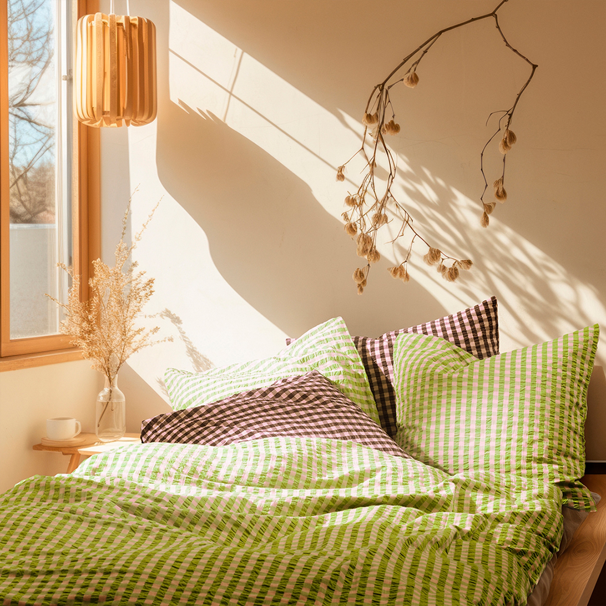 Die weiche Baumwolle in Kombination mit der gekräuselten Struktur verleiht ein einzigartiges Gefühl von Luxus. Gleichzeitig ist die Bettwäsche praktisch im Alltag, da sie keinen Bügelaufwand erfordert und ihr schönes Aussehen Waschgang für Waschgang behält. Das dezente Karomuster in Grün sorgt für einen ruhigen und stilvollen Look, der sowohl in moderne als auch klassische Schlafzimmer passt.