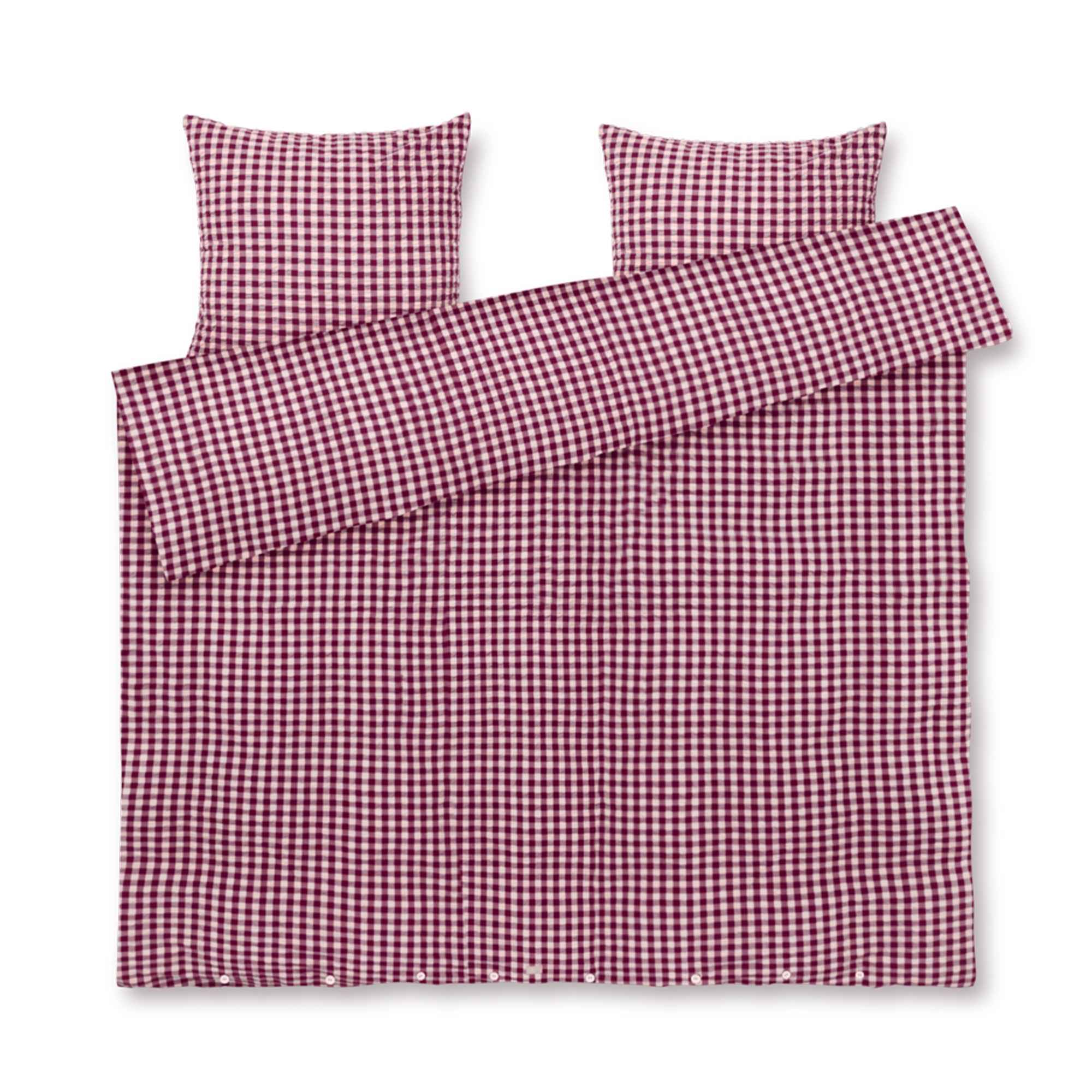 Die weiche Baumwolle in Kombination mit der gekräuselten Struktur vermittelt ein einzigartiges Gefühl von Luxus. Gleichzeitig ist die Bettwäsche praktisch im Alltag, da kein Bügeln erforderlich ist und sie auch nach vielen Wäschen ihr schönes Aussehen behält. Die feinen Karos in Pflaume und Rosa verleihen ein ruhiges und elegantes Erscheinungsbild, das sowohl in moderne als auch klassische Schlafzimmer passt.