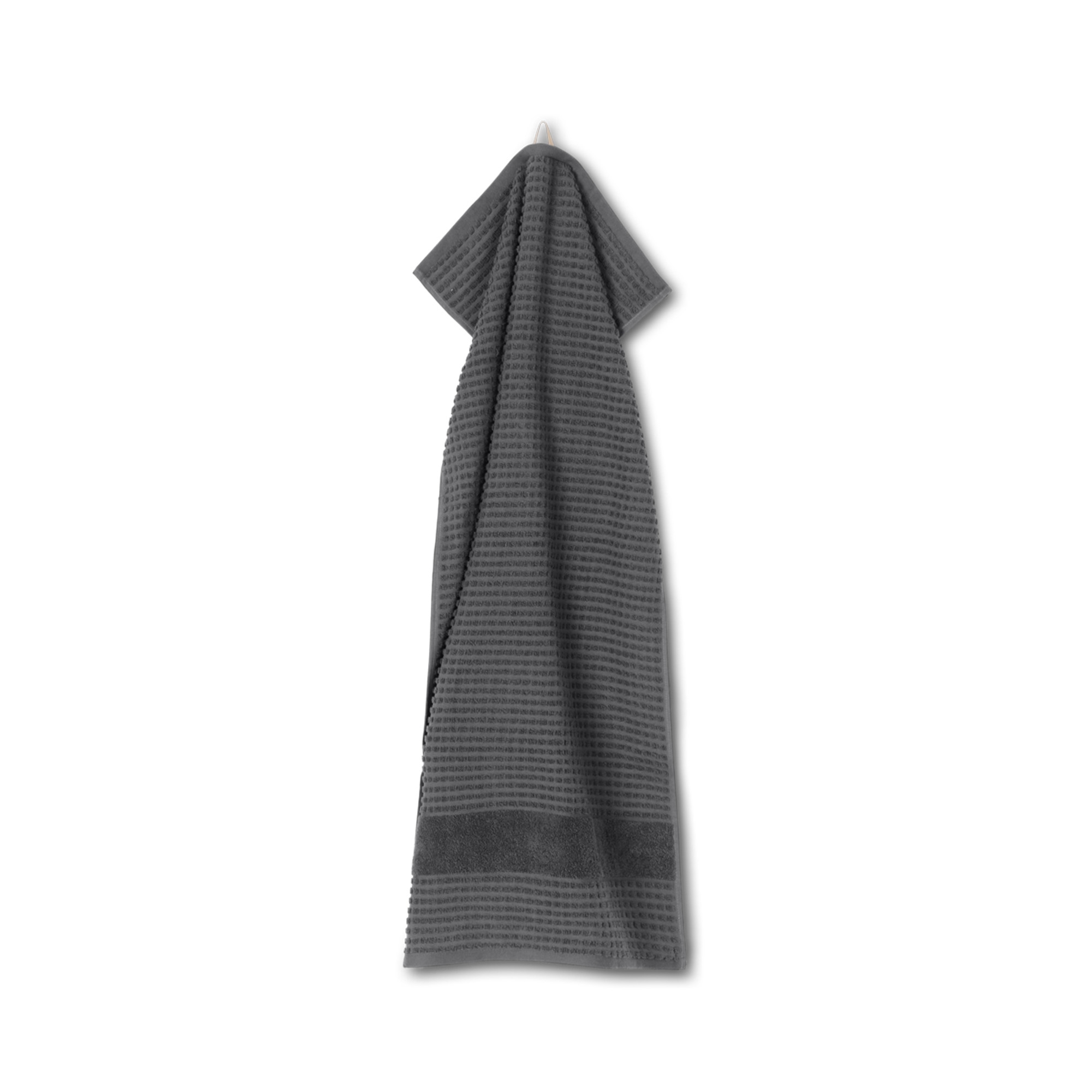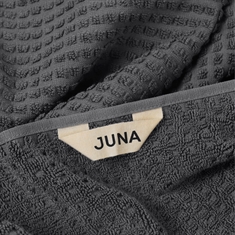Gönnen Sie sich im Alltag Luxus mit diesem schönen Check-Handtuch von JUNA. Die feine dunkelgraue Farbe und das dezente Karomuster schaffen einen ruhigen und stilvollen Ausdruck, der perfekt in das moderne Badezimmer passt.