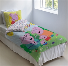 Junior-Bettwäsche mit Peppa Wutz, hergestellt aus 100% weicher Baumwolle. Die Bettwäsche ist von hoher Qualität mit guter Atmungsaktivität, strapazierfähiger Webart und Farbechtheit – was dafür sorgt, dass die Farben länger erhalten bleiben. Die weiche Junior-Bettwäsche ist perfekt für Kinder, da das Material aus weicher Baumwolle besteht und OEKO-TEX® zertifiziert ist. Das Design ist ruhig mit feinen und weichen Farben. Die Bettwäsche ist mit einem schönen Motiv von Peppa, Gustav und Evie Wutz gestaltet, die auf der Vorderseite spielen, während die Rückseite einen Allover-Print hat. Die OEKO-TEX® Zertifizierung bedeutet, dass das Junior-Bettwäsche-Set auf Schadstoffe getestet wurde, sodass Ihr Kind jede Nacht sicher darin schlafen kann.