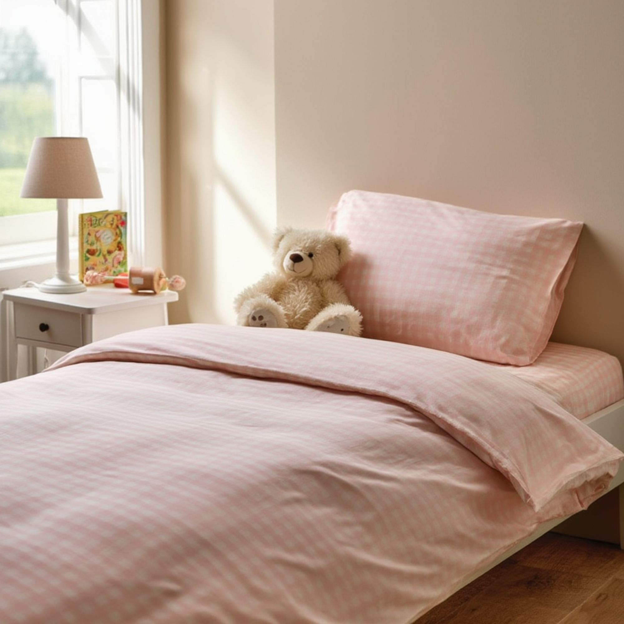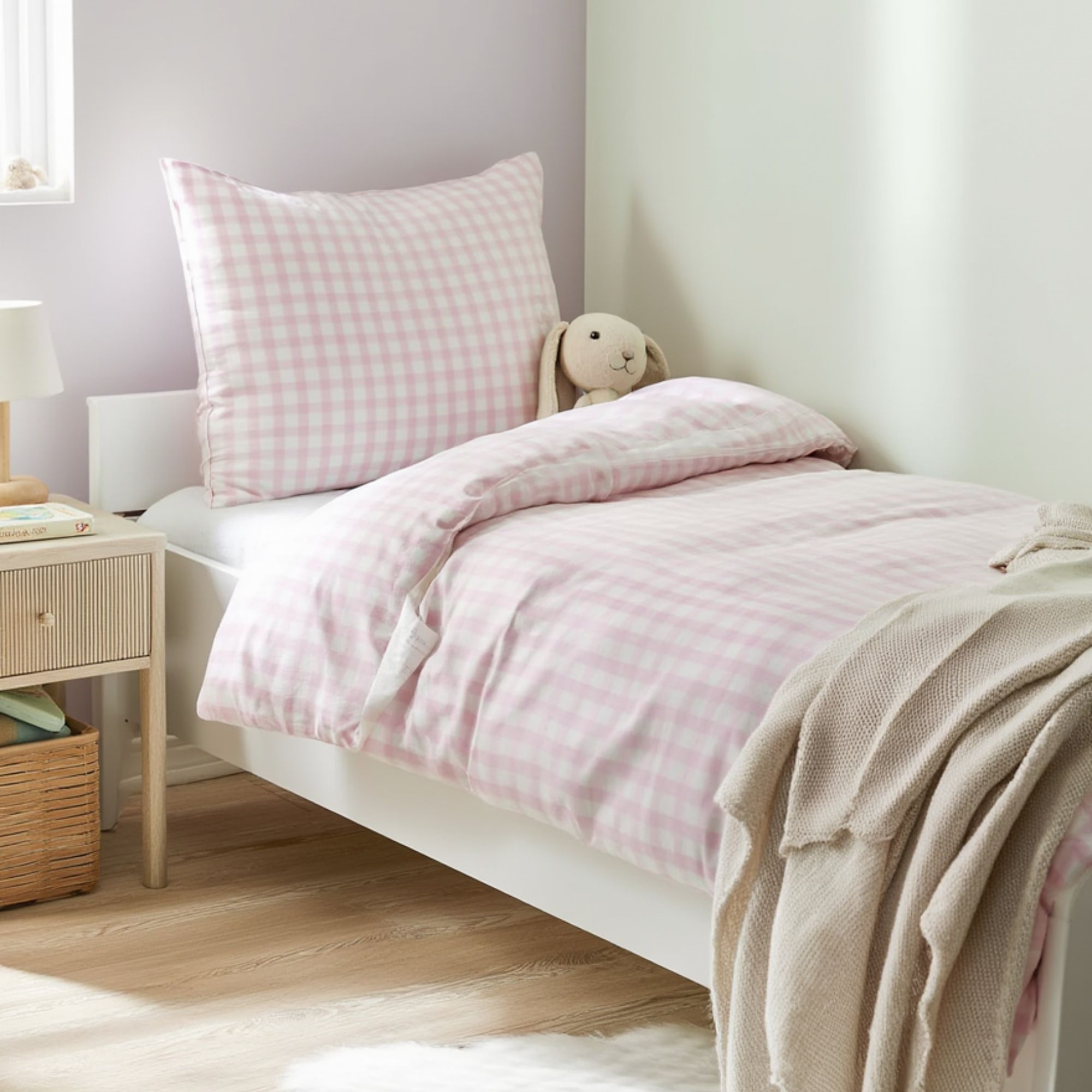 By Mats Baby-Bettwäsche 70x100 cm - weiß und hellrosa kariert