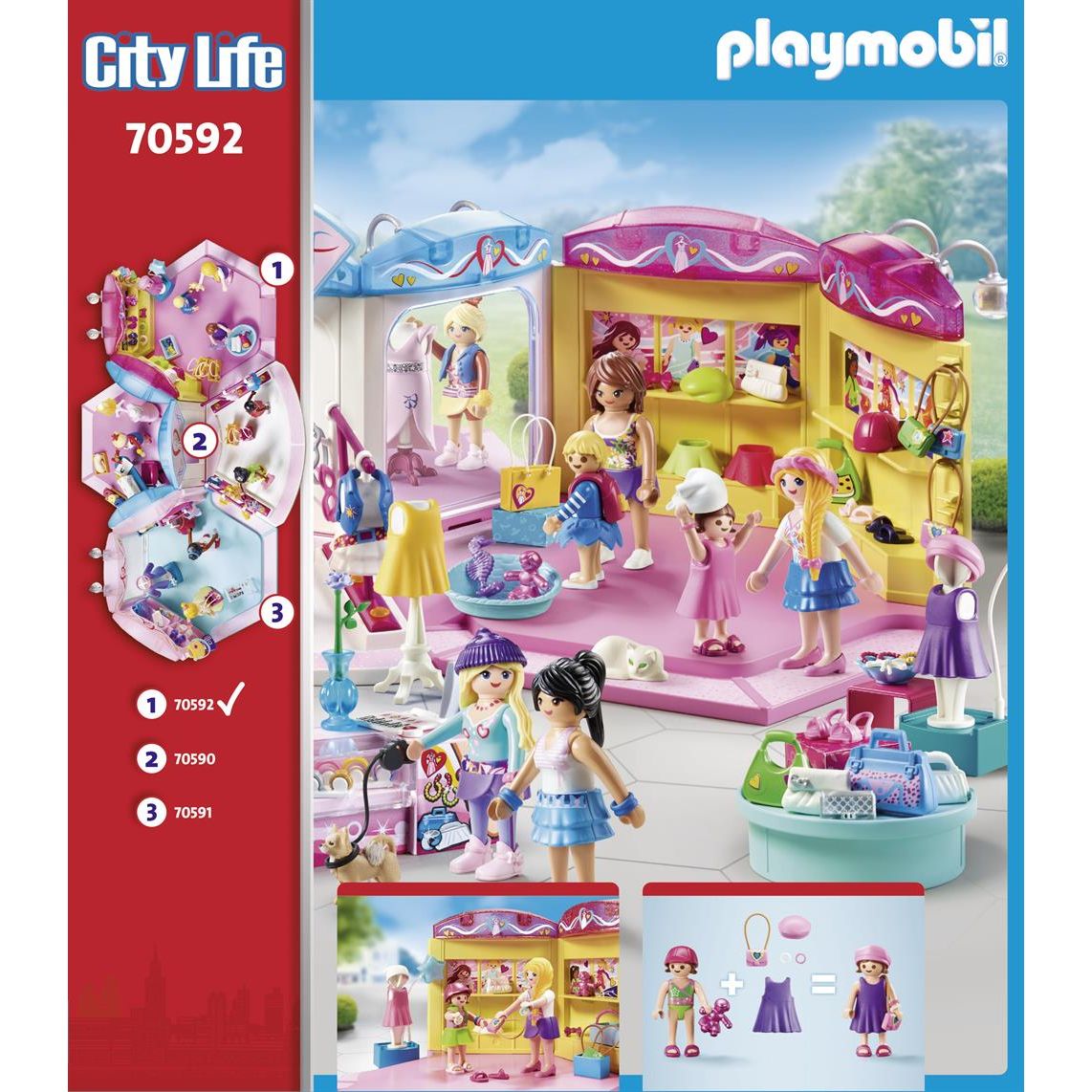 Startseite »Spielzeug » Playmobil » PLAYMOBIL City Life Kids Fashion Store - PL70592 - PLAYMOBIL City Life Playmobil City Life Guter Preis:33,99EUR Nur noch wenige auf Lager Anzahl In den Warenkorb Mehr dazu unter: Playmobil City Life Artikelnummer:LEGPL70592 Hast du Fragen zum Produkt? Fantastisches Zubehör für stilbewusste Shopper im Kinderladen erhältlich. Kann mit Art.-Nr. 70590 Modedesignstudio und Art.-Nr. 70591 Modegeschäft kombiniert werden. Maße: 19 x 22 x 13 cm (B x T x H). Zurück zu PLAYMOBIL City Life
