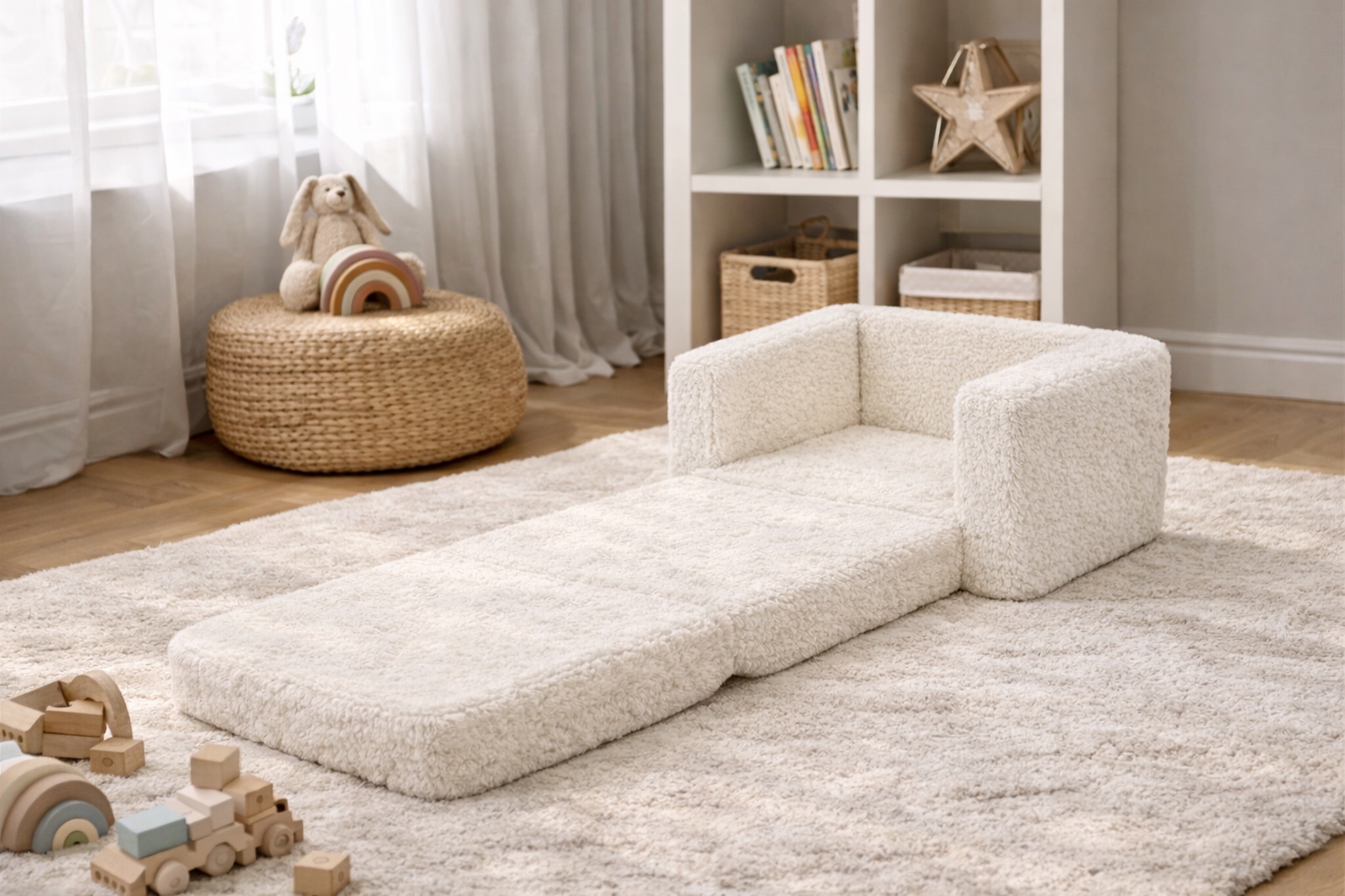 Geben Sie Ihrem Kind mit diesem praktischen und komfortablen Klapp-Kindersessel von Nordstrand Home seinen ganz eigenen gemütlichen Platz. Die clevere 2‑in‑1‑Lösung funktioniert sowohl als weicher Kindersessel und lässt sich zudem unkompliziert zu einer kleinen Matratze aufklappen – perfekt zum Entspannen, Vorlesen, für gemütliche Filmstunden und kleine Nickerchen.