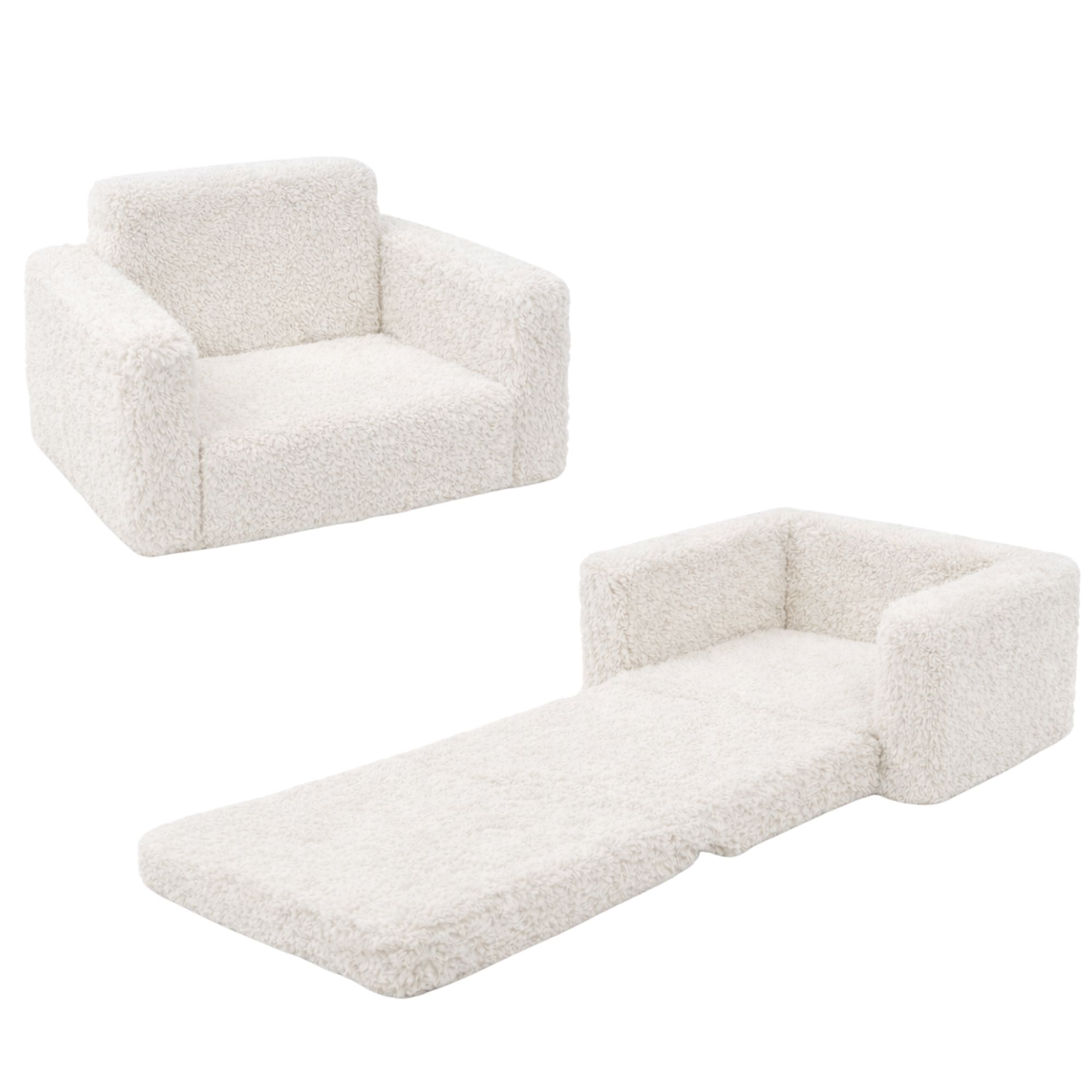 Klapp-Kindersessel | 2‑in‑1, faltbarer Stuhl für Kinder mit weichem Plüschbezug