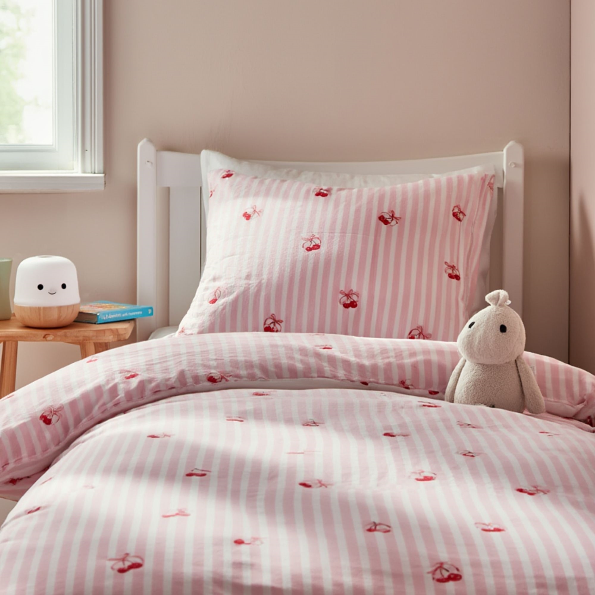 By Mats Babybettwäsche 70x100 cm - Rosa mit Kirschen