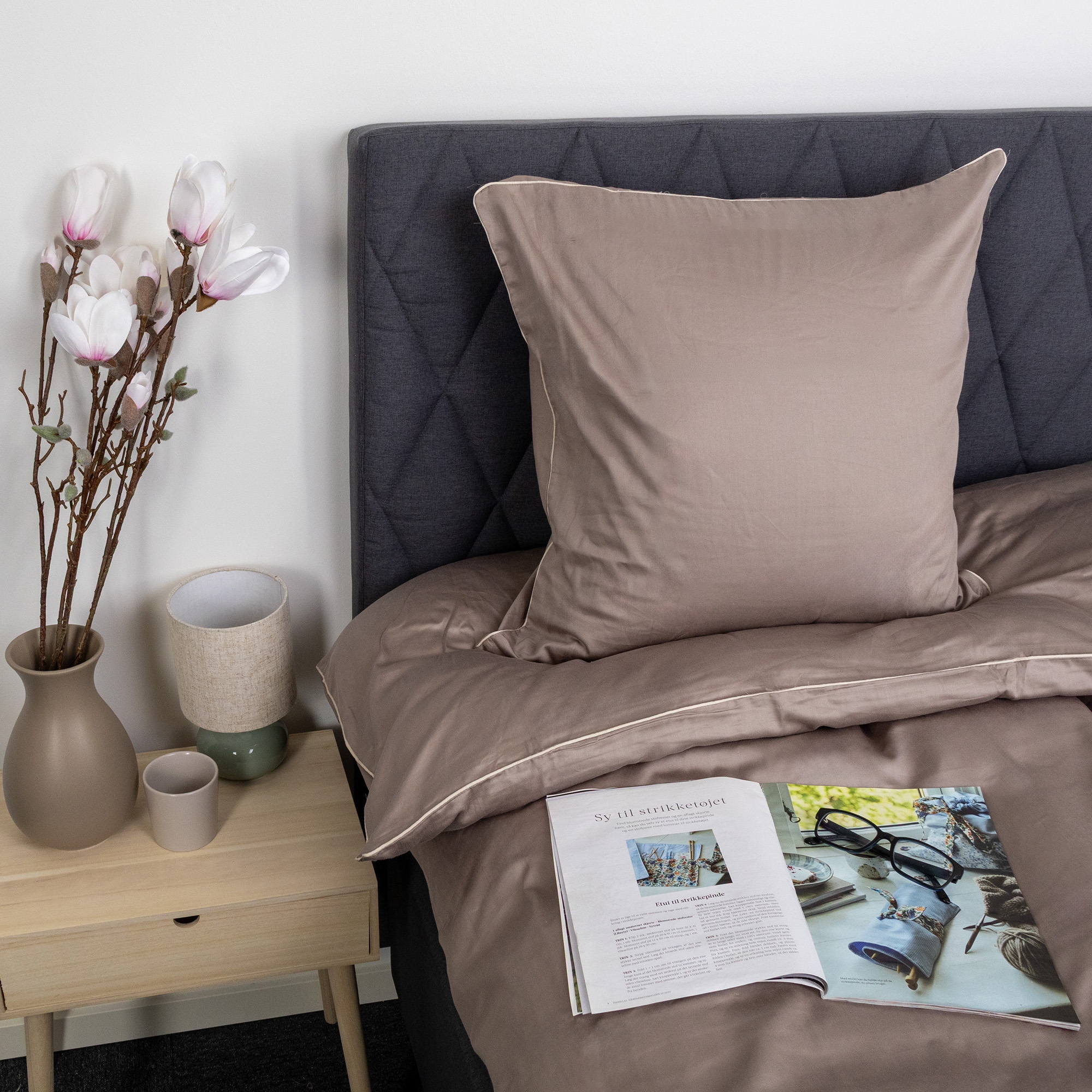 Schaffen Sie einen eleganten und luxuriösen Look im Schlafzimmer mit diesem exklusiven Kissenbezug aus 100% Baumwollsatin mit dekorativem Paspelrand von By Borg. Das einfarbige Design in dunklem Grau kombiniert mit einem helleren Paspelrand verleiht ein schlichtes und raffiniertes Erscheinungsbild, das die Gesamtwirkung des Schlafzimmers aufwertet.