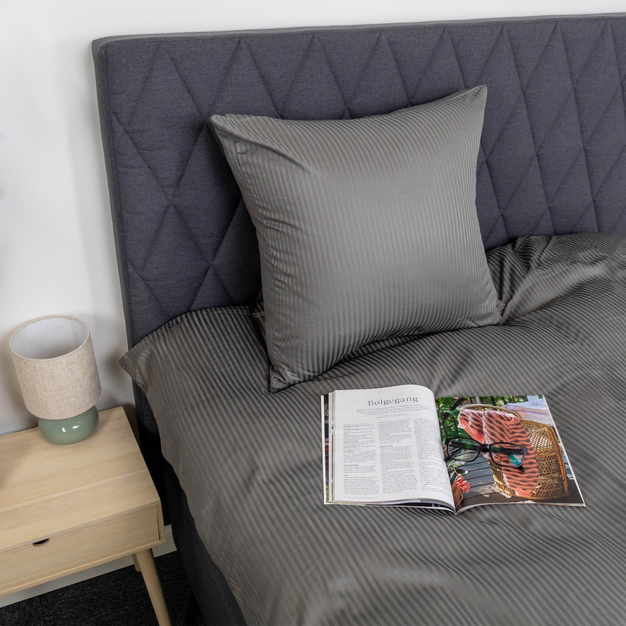 Die langen Fasern ermöglichen es, den Stoff dichter und feiner zu weben, was zu einer angenehmen und glatten Oberfläche führt. Die Qualität wird in der Fadendichte gemessen, auch Thread Count (TC) genannt, und dieser Kissenbezug hat eine hohe Fadendichte von TC400, die eine extra feine Webart, hohe Strapazierfähigkeit und lange Lebensdauer gewährleistet. Die jacquardgewebten Streifen sind direkt in den Stoff eingearbeitet und verleihen ein dezentes und exklusives Erscheinungsbild, das auch nach zahlreichen Wäschen schön bleibt.