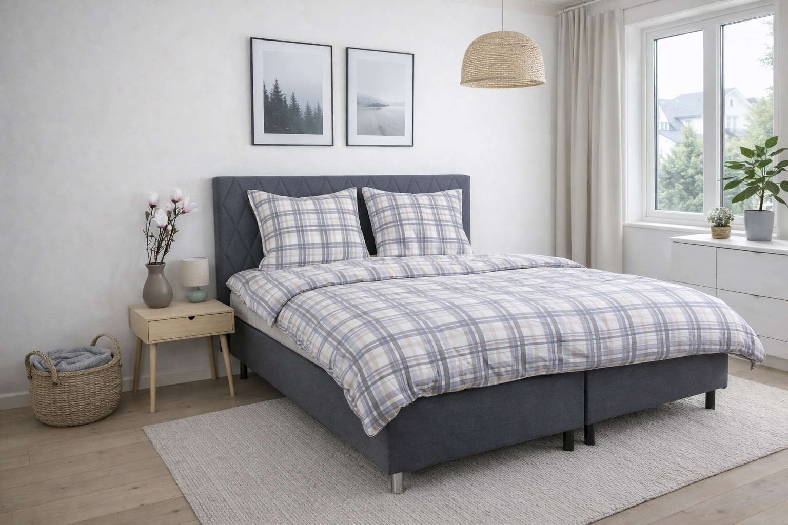 Das karierte Design kombiniert hübsche blaue Karos mit einem hellen Hintergrund, was im Schlafzimmer einen ruhigen und harmonischen Ausdruck schafft.