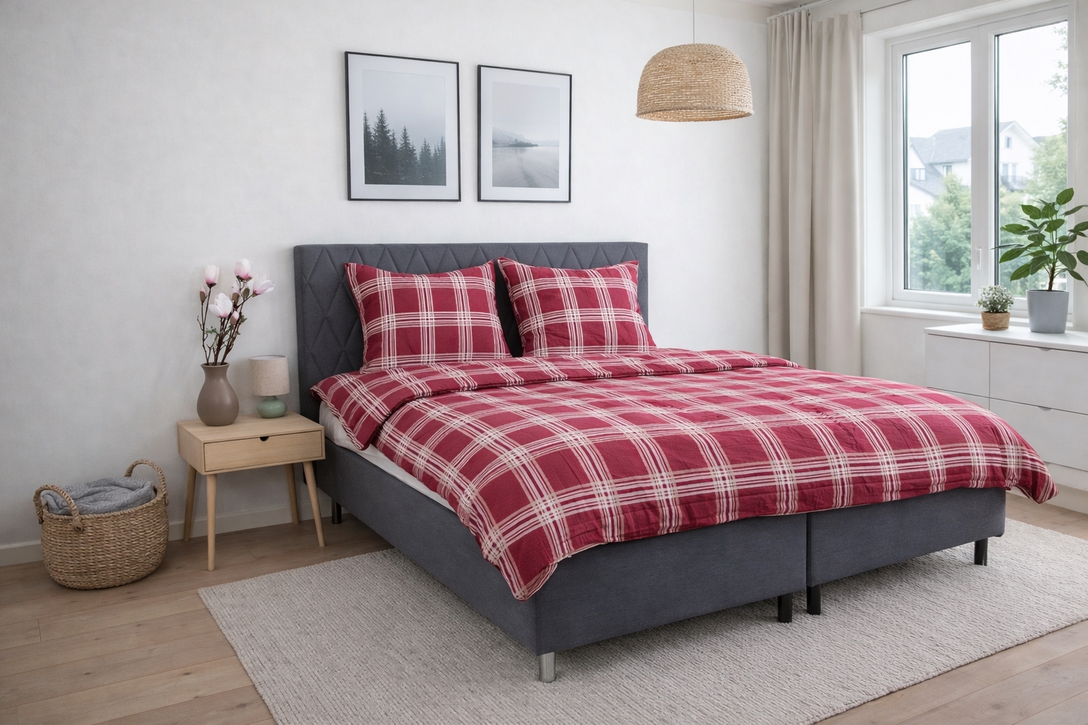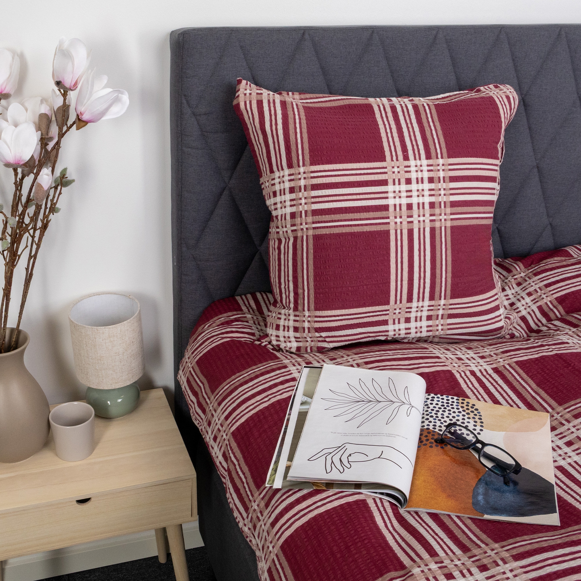 Der Kissenbezug wird mit einem Reißverschluss verschlossen. Das karierte Design verleiht ein ruhiges und zeitloses Erscheinungsbild, das sowohl in moderne als auch klassische Schlafzimmer passt.