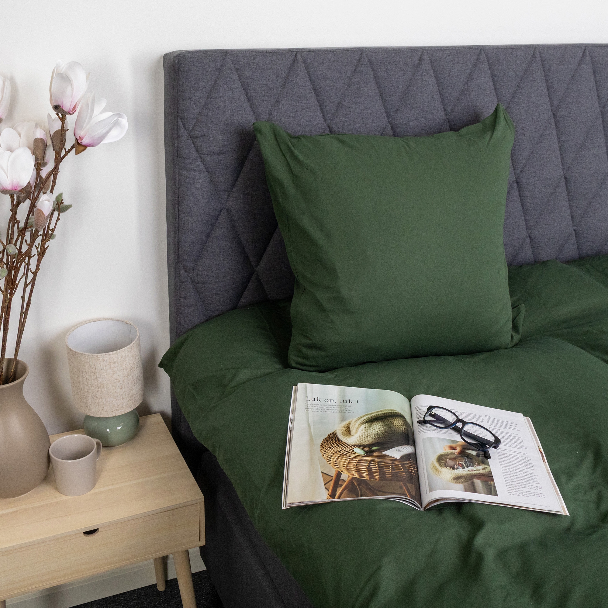 Startseite »Kopfkissen » Kissenbezüge » Kissenbezug 60x63 cm Kissenbezug 60x63 cm - Uni Dunkelgrüner Kissenbezug - Mikrofaser Kissenbezug - IN Style Sparen50% In Style 13,996,99EURSparen 7,- Auf Lager Anzahl In den Warenkorb Mehr dazu unter: In Style Artikelnummer:626-9 Lesen Sie unseren Bettwäsche-Guide Entdecken Sie unser großes Spannbettlaken-Sortiment Entdecken Sie unser großes Kissen 60x63 Sortiment Hast du Fragen zum Produkt? Langlebige QualitätGlatt & feine FädenOEKO-TEX® zertifiziert Kissenbezug: 1 Stk. á 60x63 cm Material: 100% Mikrofaser Webart: 150TC (Fadenzahl = Anzahl der Fäden pro Quadratzoll) Farbe: Dunkelgrün Design: Uni Marke: IN Style Verschluss: Mit innenliegendem Reißverschluss Waschen: 30° Trockner: Ja, bei niedriger Temperatur Bügeln: Nein Zertifizierung: STANDARD 100 by OEKO-TEX® (SH025 263781). Ihre Garantie, dass das Produkt frei von gesundheitsschädlichen Chemikalien ist. Erleben Sie einen glänzenden Kissenbezug aus weichem und glattem Mikrofaser-Material, das klassische Eleganz mit modernem Ausdruck verbindet. Der Kissenbezug sorgt für ein leichtes und angenehmes Gefühl und ist gleichzeitig sehr strapazierfähig. Mikrofaser-Bettwäsche ist oft beliebt, da sie eine lange Lebensdauer hat und keine besondere Behandlung benötigt, somit sehr pflegeleicht ist. Mikrofaser-Kissenbezüge sind eine ideale Wahl für alle, die Komfort und Funktionalität im Schlafzimmer wünschen. Mit seiner glatten und glänzenden Oberfläche fühlt sich der Kissenbezug nicht nur weich und angenehm auf der Haut an, sondern ist auch strapazierfähig, leicht und schnelltrocknend. Das bedeutet, dass Sie einen Kissenbezug erhalten, der seine Qualität auch nach häufigem Waschen behält. Mikrofaser-Kissenbezüge sind besonders beliebt, da sie extrem pflegeleicht sind. Sie benötigen weder Trockner noch Bügeleisen, da das Material von Natur aus schnell trocknet und ohne Knitterfalten schön bleibt. Das macht Mikrofaser-Bettwäsche zu einer praktischen Wahl für den Alltag und für alle, die ein schönes und einladendes Schlafzimmer mit minimalem Aufwand wünschen. Der Kissenbezug verfügt über einen praktischen Reißverschluss. Dies erleichtert und beschleunigt das Wechseln der Bettwäsche – denken Sie daran, den Reißverschluss vor dem Waschen zu schließen. Finden Sie hier Kissenbezüge für Ihre Zusatzkissen Frischen Sie Ihr Bett und Schlafzimmer mit einem schönen Bettwäsche-Set wie diesem auf. Nutzen Sie gleichzeitig die Gelegenheit, Ihren Schlafkomfort zu erhöhen, indem Sie ein neues, weiches Spannbettlaken von hoher Qualität hinzufügen. Finden Sie hier hochwertige Spannbettlaken IN Style bietet eine Vielzahl fantastischer Mikrofaser-Bettwäschesets sowie leichte und luftige Sommerdecken mit Faserfüllung. IN Style wird von Borg Living produziert, das seit 2013 besteht und für seine Innovationen in Qualität und Design bekannt ist, was Ihnen die besten Voraussetzungen für einen erholsamen Schlaf garantiert. Zurück zu Kissenbezug 60x63 cm