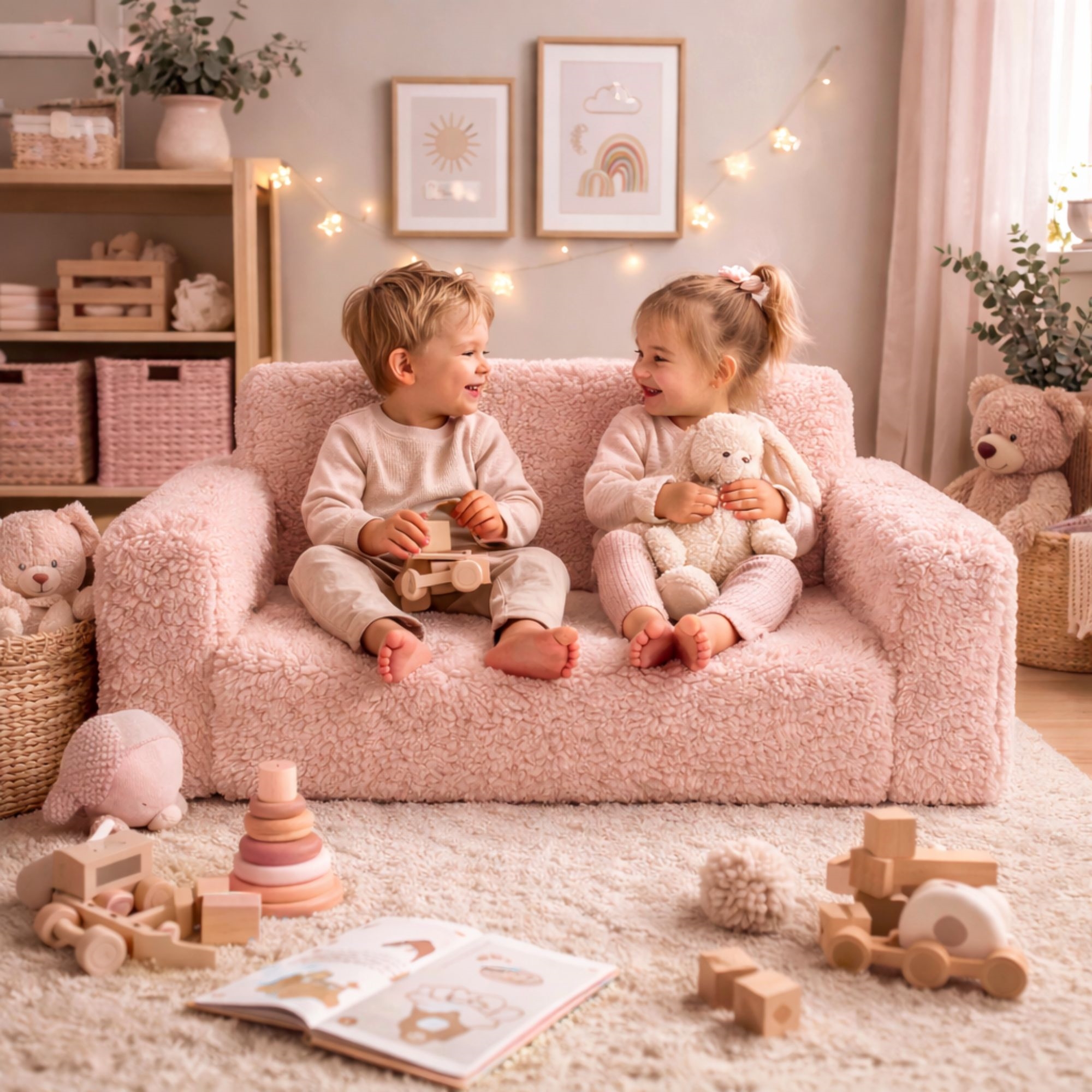 Ein Klappsofa für Kinder wie dieses vereint Komfort, Spiel und Funktionalität in einem Möbelstück und wird schnell ein natürlicher Mittelpunkt im Kinderzimmer.
