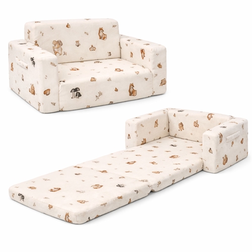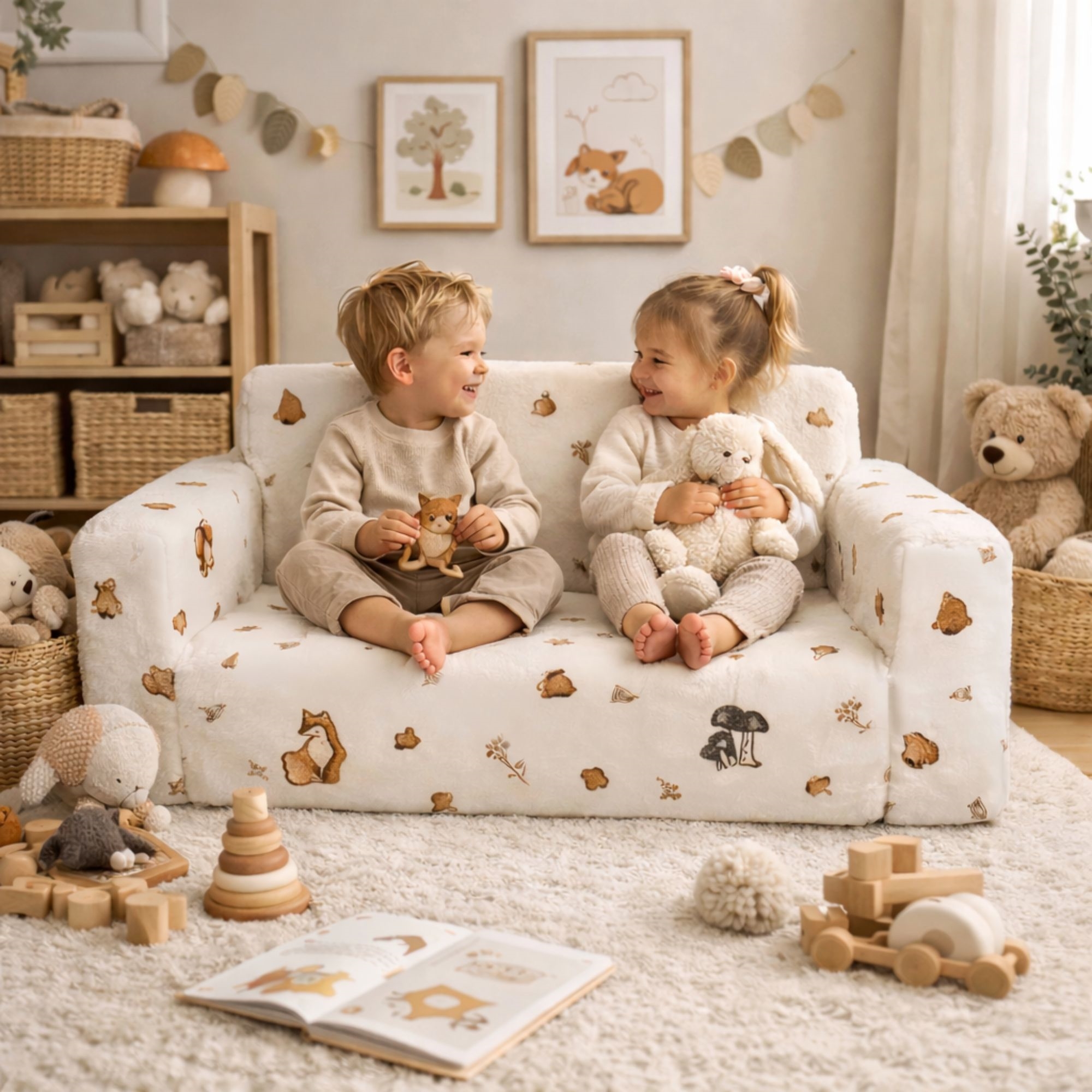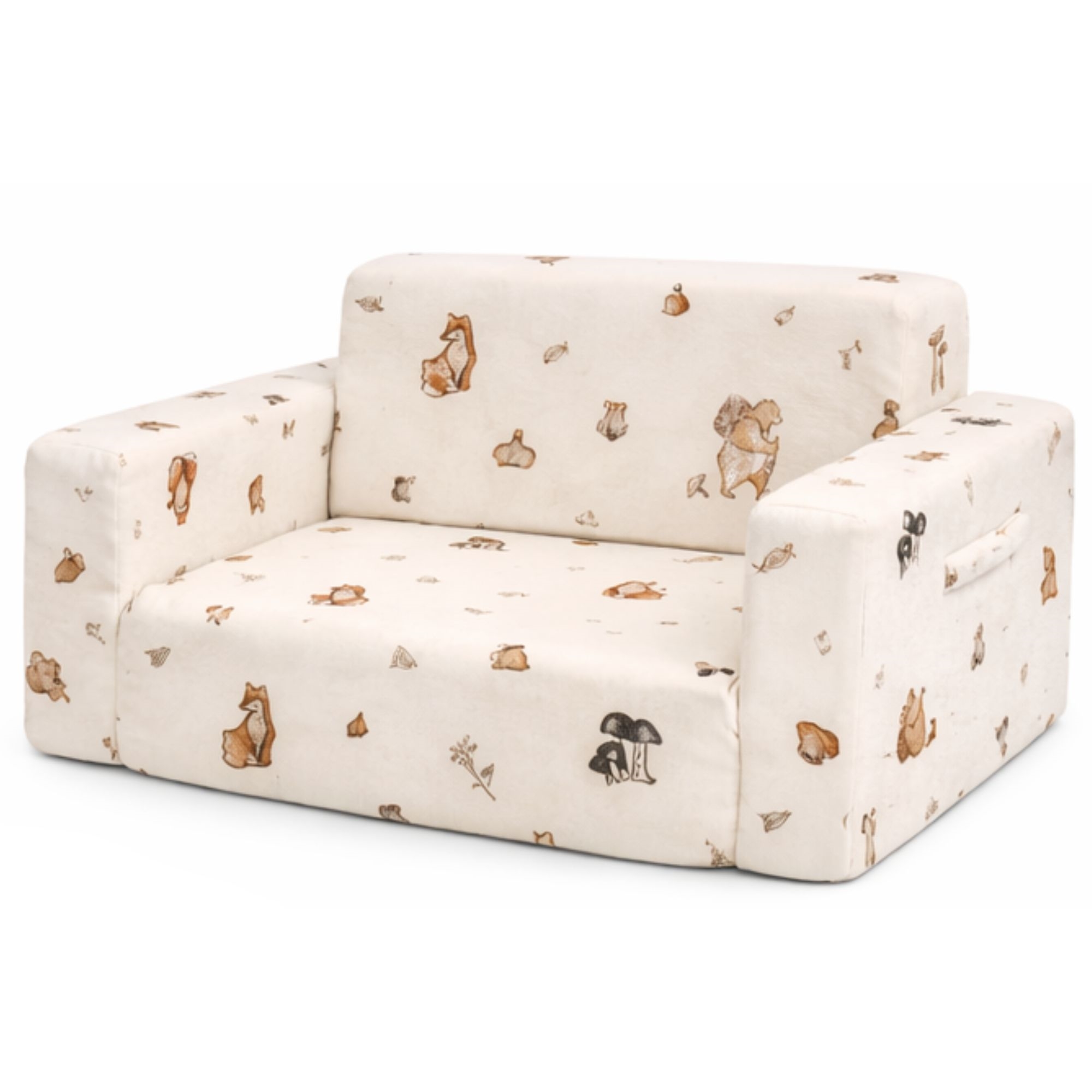 Klappsofa für Kinder - weiches und gemütliches ausklappbares Kindersofa mit Waldtieren