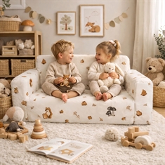 Schaffen Sie eine gemütliche und funktionale Ecke im Kinderzimmer mit diesem schönen Klappsofa für Kinder von Nordstrand Home. Das weiche Kindersofa ist in einem schönen Sandton gestaltet und mit einem niedlichen Waldtiere-Print versehen, der perfekt in ein nordisch inspiriertes Kinderzimmer passt. Hier erhalten Sie eine praktische 2-in-1-Lösung, die sowohl im Alltag als Sofa für Kinder als auch als ausgeklappte Matratze zum Entspannen, Lesen oder für ein Nickerchen dient.