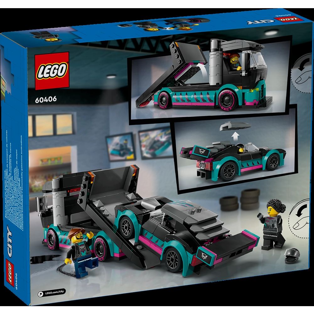 Startseite »Alle LEGO Produkte LEGO City - Rennwagen und Autotransporter - 60406 - 328 Teile LEGO City Guter Preis:31,49EUR Nur noch wenige auf Lager Anzahl In den Warenkorb Mehr dazu unter: LEGO City Artikelnummer:LEG60406 Hast du Fragen zum Produkt? Erhöhe die Spannung mit dem LEGO® City Spielset Rennwagen und Autotransporter, ein perfektes Geschenk, das die Liebe von Kindern zu Spielzeugautos und Lastwagen stärkt. Das Set enthält einen Renntransporter mit funktionaler Rampe und einen coolen Rennwagen mit tiefergelegtem Fahrwerk und stylischen Kotflügeln. Das Set enthält außerdem Minifiguren eines Rennfahrers und eines Lkw-Fahrers für spaßige Rollenspiele mit Geschichten und Abenteuern. Das Spielset enthält eine einfache, gedruckte Bauanleitung und eine schrittweise 3D-Anleitung in der LEGO Builder App, in der Kinder die Modelle beim Bauen hereinzoomen, drehen und aus allen Blickwinkeln betrachten können. Der Modelltransporter ist über 7 cm hoch, 17 cm lang und 6 cm breit. Zurück zu Alle LEGO Produkte