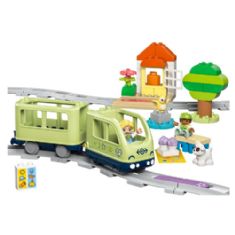 Startseite »Alle LEGO Produkte LEGO DUPLO - Interaktiver Erlebniszug - 10427 - 57 Teile Duplo Guter Preis:81,99EUR Nur noch wenige auf Lager Anzahl In den Warenkorb Mehr dazu unter: Duplo Artikelnummer:LEG10427 Hast du Fragen zum Produkt? Kleine Kinder können sich auf den Fahrersitz des Spielzeugs Interaktiver Erlebniszug setzen. Mit diesem Zugspielzeug können die Kleinsten bestimmen, wohin die Fahrt geht, und sich dann auf eine Reise voller Lichter, Geräusche und Lernmöglichkeiten begeben. Das Bau- und Umbauspielzeug enthält Bausteine zum Bau eines Parks, eines Strandes, eines Bahnhofs oder des Familienhauses, sodass Kleinkinder ihre Neugierde wecken und kreative Bauweisen entdecken. Das Lernspielzeug fördert die Geduld der Kinder und stärkt ihre Feinmotorik und Kreativität, wenn sie sich darauf konzentrieren, die Eisenbahn zu bauen und eine Strecke für den Personenzug festzulegen. Die 3 Funktionssteine erwecken das Spiel zum Leben, und der Spielzeugszug erzeugt realistische Geräusche, wenn er darüber fährt – benötigt 4 AAA-Batterien (nicht enthalten). Sie können außerdem den speziellen Anpassungsstein verwenden, um eigene Geräusche abzuspielen, die mit der kostenlosen LEGO® DUPLO® App 'Interactive Trains' aufgenommen werden können, und den Zug mithilfe eines tragbaren elektronischen Geräts fahren. Zurück zu Alle LEGO Produkte
