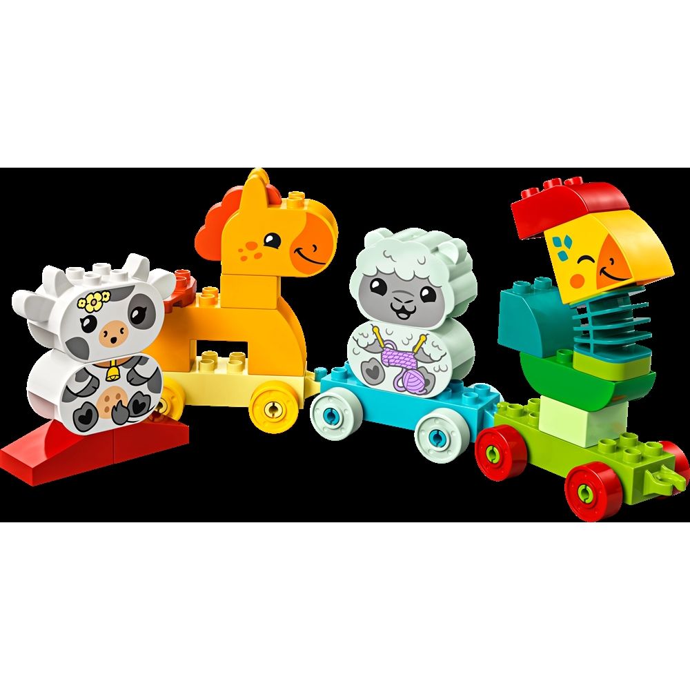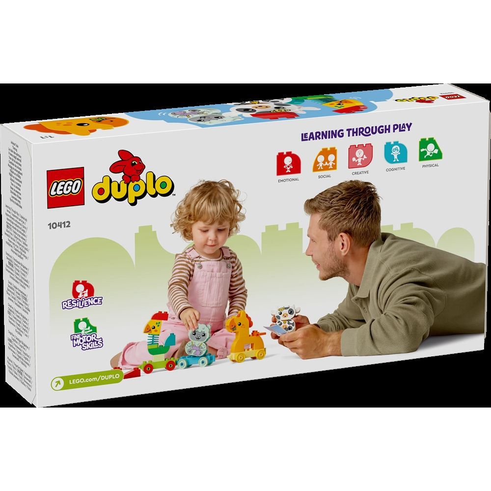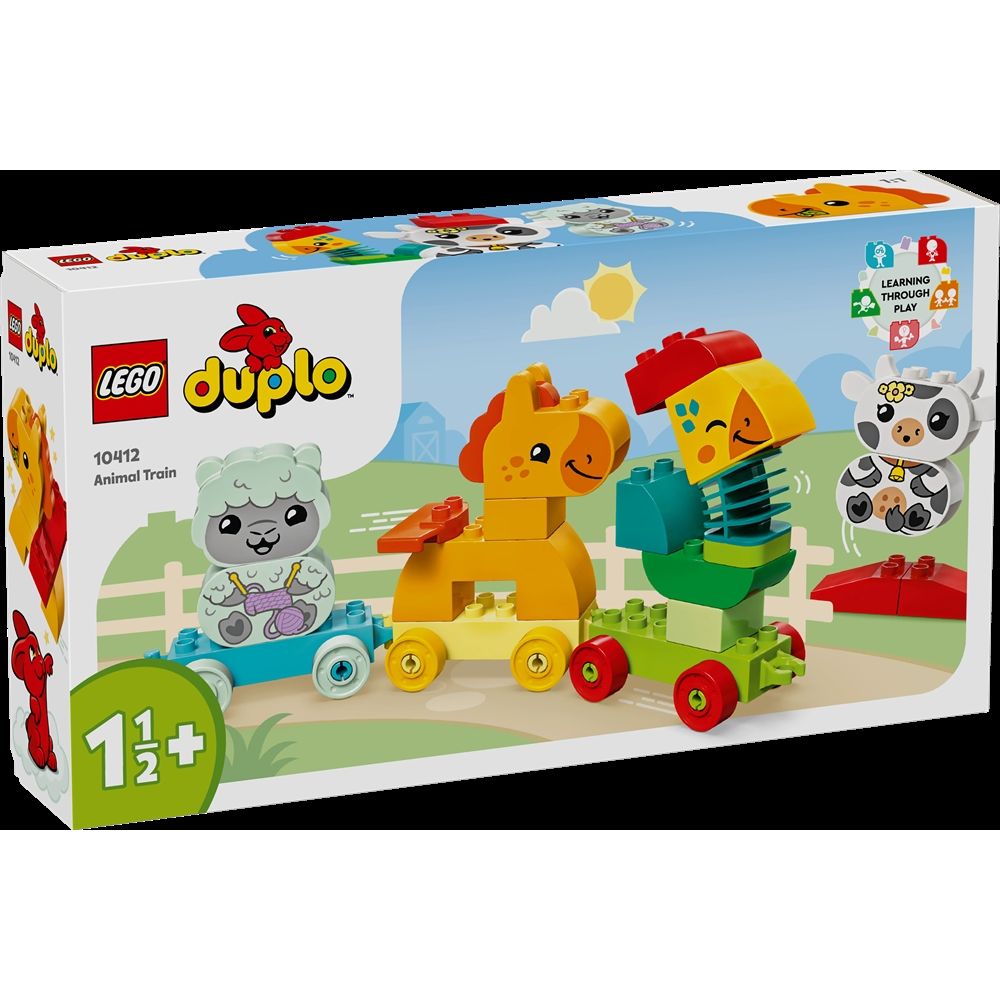 Startseite »Alle LEGO Produkte LEGO DUPLO - Mein erstes Tierzug-Set - 10412 - 19 Teile Duplo Guter Preis:24,49EUR Nur noch wenige auf Lager Anzahl In den Warenkorb Mehr dazu unter: Duplo Artikelnummer:LEG10412 Hast du Fragen zum Produkt? Kennst du ein Kind, das kreatives Spiel und naturbezogenes Spielzeug liebt? Führe Kleinkinder ab 1,5 Jahren in farblich abgestimmtes Spiel mit dem LEGO® DUPLO® Set Mein erstes Tierzug (10412). Dieses Lernspielzeug für die Kleinsten enthält 4 süße Tiere zum Bauen - einen Hahn, ein Pferd, ein Lamm und eine Kuh - die Kleinkinder auf eine Reise voller spielerischer Rollenspiele mitnehmen. Kleine Kinder üben Problemlösungsfähigkeiten, wenn sie den Karten folgen, um die Tiere zu bauen, und sie anschließend den bunten Waggons zuzuordnen. Das Fahrzeugspielzeug enthält außerdem 2 zusätzliche Bausteine, damit Kinder ihre Kreativität ausleben können, indem sie die Tiere bauen und umbauen und eigene Spielzeugfiguren erfinden. Spielanregende Details, wie der flexible Hals des Hahns und die miteinander verbindbaren Wagen des Spielzeugzuges, fördern die Entwicklung der motorischen Fähigkeiten von Kindern. Wenn das Set vollständig aufgebaut ist, ist der Spielzeugzug mit den Tieren über 17 cm hoch, 43 cm lang und 6 cm breit. Zurück zu Alle LEGO Produkte