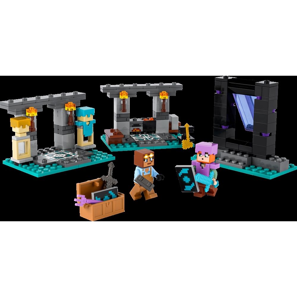 Startseite »Spielzeug » LEGO » LEGO Minecraft LEGO Minecraft - Waffenkammer - 21252 - 203 Teile LEGO Minecraft Guter Preis:24,49EUR Nur noch wenige auf Lager Anzahl In den Warenkorb Mehr dazu unter: LEGO Minecraft Artikelnummer:LEG21252 Hast du Fragen zum Produkt? Minecraft-Enthusiasten werden es lieben, die Möglichkeit zu haben, ikonische Waffen und Elemente aus dem Spiel in diesem LEGO-Set zu bauen und damit zu spielen. Dieses Gaming-Bauspielzeug für Kinder enthält zwei bekannte Figuren: den Minecraft-Actionhelden Alex mit seinem Schild und Diamantschwert und den fleißigen Rüstungsschmied. Es gibt drei Bereiche zu erkunden: den Arbeitsbereich mit Amboss, Ofen, Schleifstein und einem mit Lava gefüllten Kessel, den Rüstungsraum mit einer Truhe, die eine goldene Axt, einen verzauberten Dreizack, ein Netherit-Schwert, ein Schild und andere Minecraft-Ressourcen enthält, und das Nether-Portal, das einen Eingang mit Schwingtür für das nächste Abenteuer der Spieler bietet. Zurück zu LEGO Minecraft