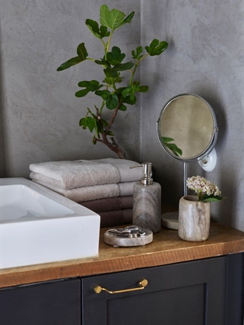 Startseite »Dekoartikel Sparen50% Halvor Bakke Make-up Spiegel - Stein von Halvor Bakke - Sanders - Höhe 35 cm Make-up SpiegelZoom-Effekt35x17 cm 54,4927,49EURSparen 27,- Anzahl In den Warenkorb Nur noch wenige auf Lager Lieferung: 1-2 Tage Artikelnummer:108357 Spezifikationen Typ: Make-up Spiegel Größe: 35x17 cm Farbe: Chrom Material: Chrom und Stein mit Marmor-Effekt Klassischer Kosmetikspiegel – Eleganz für dein Badezimmer Dieser Halvor Bakke Kosmetikspiegel ist entworfen, um deinem Badezimmer einen Hauch von Eleganz zu verleihen. Mit seinem klassischen runden Design und einer Höhe von 35 cm ist er sowohl praktisch als auch stilvoll. Der Spiegel ist drehbar, sodass du dein Gesicht auf einer Seite vergrößert sehen kannst. Das ist ideal für das Auftragen von Make-up und Hautpflegeroutinen. Drehbarer Spiegel Das Clevere an diesem Kosmetikspiegel ist das drehbare Design. Dies ermöglicht dir, zwischen einem normalen Spiegel und einem Vergrößerungsspiegel zu wechseln. Die vergrößerte Seite ist ideal für präzises Make-up und detaillierte Hautpflege. Diese Funktion macht den Spiegel sowohl funktional als auch vielseitig. Schaue auch gerne in der Kategorie Badezimmer-Zubehör. Entdecke unsere Auswahl an Handtuchpaketen Entdecke unsere Auswahl an Aufbewahrungslösungen für das Badezimmer Hast du Fragen zum Produkt? Mehr lesen Ausblenden FAQ – Häufig gestellte FragenWie sind Lieferzeiten und Versandkosten?Wir bieten schnelle Lieferung für die meisten Artikel mit einer geschätzten Lieferzeit von 2–4 Werktagen, da wir alle Waren selbst auf Lager haben und Bestellungen täglich versenden.Die Versandkosten sind niedrig: Versandkostenfrei ab 90 € Bestellwert. Ansonsten fallen 7,50 € Versandkosten für DHL/GLS an. Lesen Sie hier mehr: versandWas ist, wenn ich meine Bestellung zurückgeben möchte?Bei HOME-TEX.de erhalten Sie ein uneingeschränktes Rückgaberecht, solange der Artikel unbenutzt und in der Originalverpackung zurückgeschickt wird.Wie sende ich einen Artikel zurück?Wenn Sie einen Artikel zurücksenden möchten, erfolgt die Rücksendung über DHL und GLS. Der Artikel muss sicher verpackt sein und in unbenutztem Zustand samt Originalverpackung zurückgesendet werden. Kann ich mit PayPal bezahlen?Ja, auf HOME-TEX.de können Sie Ihre Bestellung sicher und bequem mit PayPal bezahlen. Bei der Zahlung mit PayPal benötigen Sie lediglich Ihre E-Mail-Adresse und Ihr Passwort. Ihre Zahlungsdaten werden dabei nicht direkt an den Online-Shop weitergegeben.Was mache ich, wenn mein Artikel beschädigt ist?Wenn Sie einen Artikel mit Fehlern oder Mängeln erhalten, kontaktieren Sie bitte unseren Kundenservice so schnell wie möglich. Zurück zu Dekoartikel