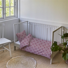 Schönes Bettwäsche-Set mit Minnie Mouse Motiv. Die Baby-Bettwäsche passt zu einer normalen Babydecke und kann im Bett, Baby-Nest, Kinderwagen oder überall dort verwendet werden, wo die Decke mitgenommen wird. Die Babydecke liegt oft viele Stunden am Tag fest um das Kind, da sie Ruhe, Wiedererkennung, Geborgenheit und Wärme für das Baby schafft – nicht nur in der ersten Zeit, sondern oft bis zum Alter von 2-3 Jahren. Sie wird daher häufig genutzt und oft gewaschen, weshalb die meisten auch weiche Bettwäsche aus hochwertiger Baumwolle wünschen.