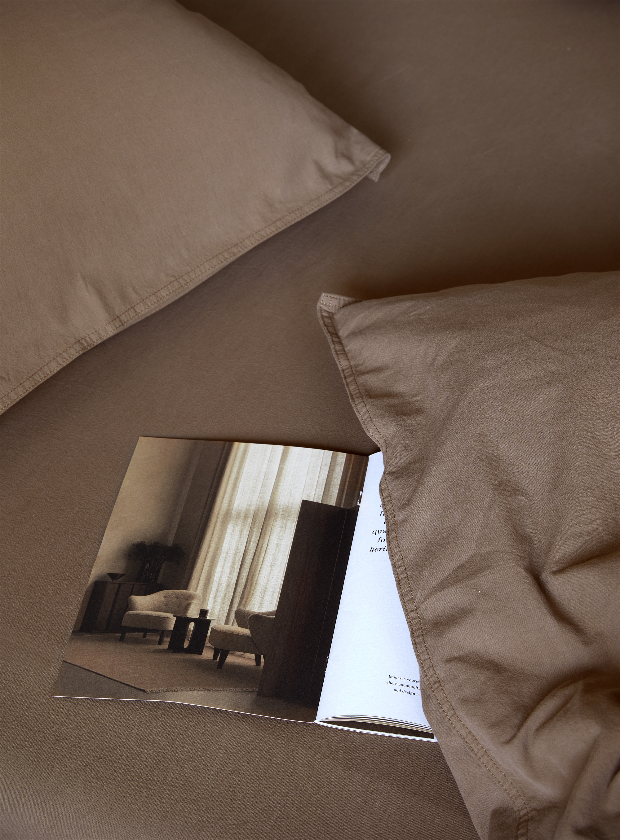 Startseite »Bettwäsche » Einzelne Bettwäsche » Extra lange Bettwäsche 140x220 cm Ökologische Bettwäsche 140x220 cm - 100% stonewashed Baumwolle - Frøya Karamellbraun - Høie of Scandinavia Bettwäsche Sparen25% Høie Of Scandinavia 108,9981,99EURSpar 27,- Auf Lager Anzahl In den Warenkorb Mehr dazu unter: Høie Of Scandinavia Artikelnummer:8249-2 Lesen Sie unseren Bettwäsche-Guide Sehen Sie unsere große Auswahl an Laken Hast du Fragen zum Produkt? Stonewashed-Baumwolle - Für ein raues AussehenExtra feine WebungSvanemærket Bettbezug: 140x220 cm Kissenbezug: 1 Stk. à 60x63 cm Material: 100% stonewashed, ökologische Baumwolle Webart: Extra fein 300TC (Thread count = Anzahl der Fäden pro Quadratzoll) Farbe: Braun Design: Frøya Karamellbraun Marke: Høie of Scandinavia Verschluss: Bettbezug mit Knöpfen, Kissenbezug mit Umschlag Waschbar: 60° Trocknergeeignet: Ja Bügeln: Ja Zertifizierung: Svanemærket (2112 0008) Zertifizierung: MADE IN GREEN by OEKO-TEX® (M1VLV2KU7). Ihre Garantie, dass das Produkt frei von gesundheitsgefährdenden Chemikalien ist. Wunderbare Bettwäsche aus 100% ökologischer Baumwolle, die sowohl umweltfreundlich ist als auch weich zur Haut. Das Set ist garngefärbt, was eine langlebige Farbe sicherstellt, die auch nach vielen Wäschen schön bleibt. Der stonewashed Look verleiht eine weiche und leicht gekräuselte Oberfläche. Gut zu wissen: In der Frøya-Serie wird 30% weniger Wasser als bei traditionellen Färbemethoden verwendet. Die Frøya-Serie wird aus 100% ökologischer Baumwolle hergestellt, die garngefärbt und stonewashed ist, wodurch die Fasern weicher werden. Genau diese spezielle Behandlung verleiht dem Bettwäsche-Set das typische stonewashed Finish und ein natürlich gekräuseltes Aussehen. Dass das Set garngefärbt ist, bedeutet, dass der Baumwollfaden bereits vor dem Weben gefärbt wird. Es wurde Baumwolle ausgewählt, die für ihre Reinheit und hohe Strapazierfähigkeit bekannt ist, und die extra feinen Baumwollfäden fühlen sich angenehm auf der Haut an. Wenn Sie auf der Suche nach roher Bettwäsche sind, die Sie Jahr für Jahr lieben werden, ist die Frøya-Serie die richtige Wahl für Ihr Schlafzimmer. Das Stonewash-Verfahren verleiht der Bettwäsche zudem ein entspanntes Erscheinungsbild, das genau auf die richtige Weise knittert. Gut zu wissen ist, dass in der Frøya-Serie 30% weniger Wasser als bei traditionellen Färbemethoden verwendet wird - und dass sie das Svanemærket für eine bessere Zukunft trägt. Das Bettwäsche-Set ist OEKO-TEX-zertifiziert, was bedeutet, dass es auf schadstofffreie Chemikalien geprüft wurde. Dies ist ein Zeichen verantwortungsvoller Produktion, das nicht nur der Umwelt zugutekommt, sondern auch unserem Körper und unserer Haut, da es das Risiko allergischer Reaktionen reduziert. Sehen Sie das große Sortiment von Høie hier Høie ist eine skandinavische Marke, die Tradition mit Innovation verbindet. Das Unternehmen besteht seit 1850 und hat im Laufe der Jahre zur Gestaltung und Entwicklung skandinavischer Textilien und Designs beigetragen. Bettwäsche von Høie ist Alltagsluxus, den sich jeder verdient. Finden Sie hier hochwertige Laken Zurück zu Extra lange Bettwäsche 140x220 cm