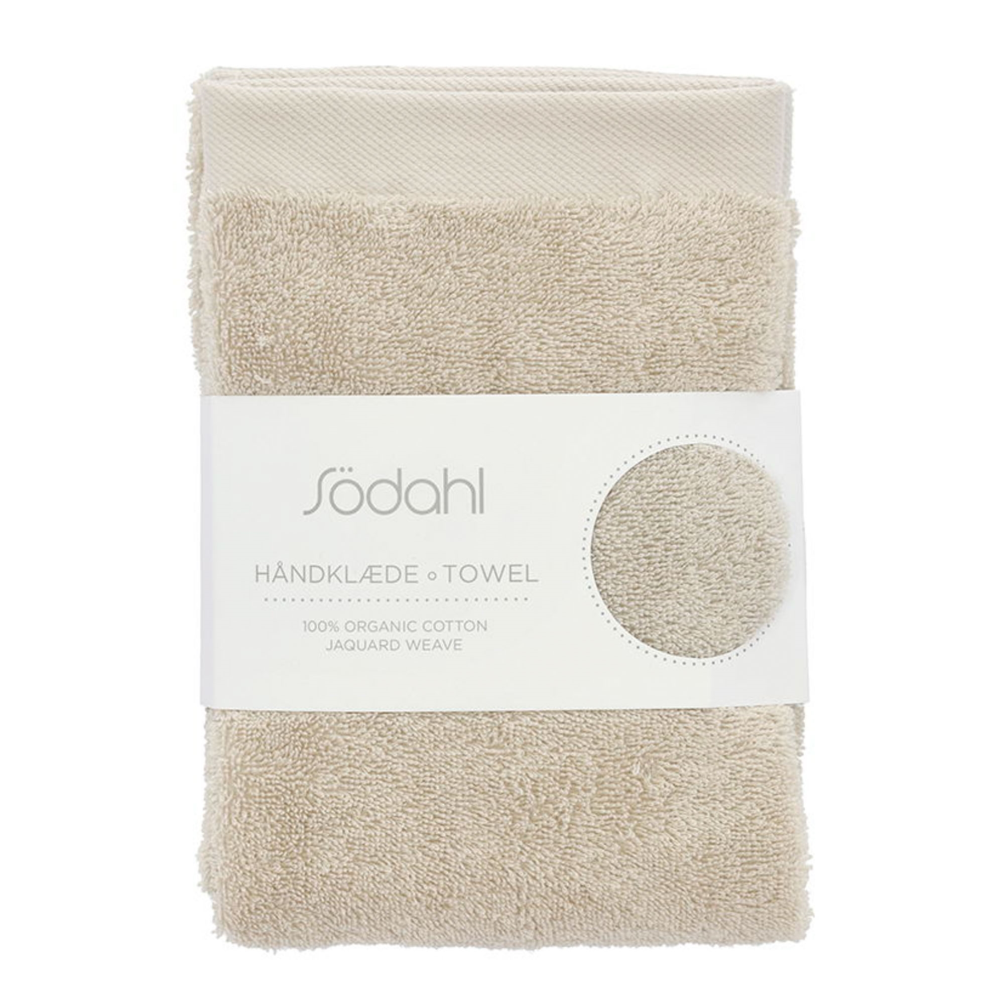Die weiche und voluminöse Qualität mit 500 g/m² sorgt für ein angenehmes Hautgefühl, während die hohe Saugfähigkeit gewährleistet, dass Hände oder Körper schnell getrocknet werden. Die elegante Beige-Farbe und der dezente, gewebte Saum mit Södahls Logo verleihen dem Badezimmer ein schlichtes und exklusives Erscheinungsbild.
