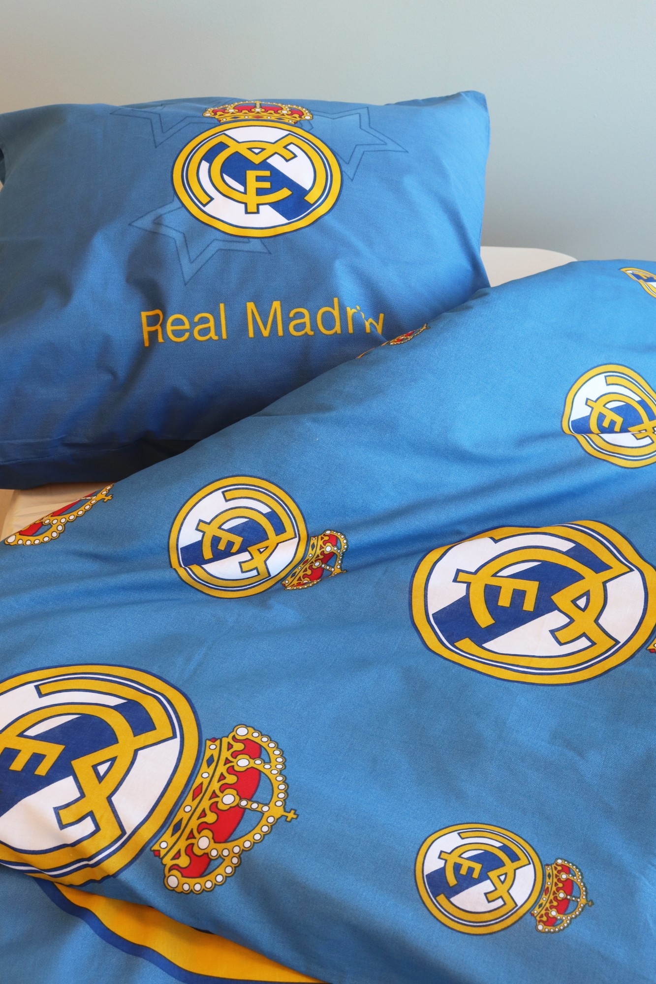 Startseite »Bettwäsche » Bettwäsche für Kinder » Bettwäsche für Kinder 140x200 cm Real Madrid Bettwäsche - 100% Baumwolle - Kinderbettwäsche 140x200 cm - blaue Fußball-Bettwäsche mit Sternen Sparen28% Licens 47,9934,49EURSparen 14,- Auf Lager Anzahl In den Warenkorb Mehr dazu unter: Licens Artikelnummer:9386-1 Lesen Sie unseren Bettwäsche-Ratgeber Sehen Sie unsere große Auswahl an Laken Sehen Sie unsere große Auswahl an Decken Hast du Fragen zum Produkt? Weiche Qualität, die sich die ganze Nacht angenehm anfühltWendbares Design für zwei LooksUnterstützen Sie Ihr Lieblings-Fußballteam Bettbezug: 140x200 cm Kissenbezug: 60x63 cm Material: 100% weiche Baumwolle Farbe: Blau Design: Real Madrid Wendbar: - Vorderseite: Druck mit Real-Madrid-Logo und Sternen - Rückseite: Vollflächiger Druck mit kleinen Logos Verschluss: Bettbezug mit Knöpfen und Kissenbezug mit Überlappung Waschen: 60° C Trockner: Ja Bügeln: Ja Zertifizierung: STANDARD 100 by OEKO-TEX® (17.HPK.23879). Ihre Garantie dafür, dass das Produkt frei von gesundheitsschädlicher Chemie ist. Real Madrid Bettwäsche 140x200 cm – blaues, wendbares Set für Fußballfans Dieses Kinderbettwäsche-Set besteht aus 100% weicher Baumwolle, die hohen Komfort mit langlebiger Qualität verbindet. Reine Baumwolle macht die Bettwäsche atmungsaktiv und angenehm auf der Haut, sodass Ihr Kind die besten Voraussetzungen für einen guten und erholsamen Schlaf hat. Wenn Sie Kinderbettwäsche aus 100% Baumwolle wählen, erhalten Sie: Weiche und angenehme Qualität auf der Haut Hohe Atmungsaktivität für ein gesundes Schlafklima Langlebiges Material, das Wäsche für Wäsche hält Kinderbettwäsche muss einiges aushalten. Daher kann unsere Baumwollbettwäsche bei 60° C gewaschen werden, was zu einem hohen Hygieneniveau beiträgt. Die hohe Waschtemperatur hilft, Bakterien zu entfernen, und hält die Bettwäsche frisch und sauber. Alle unsere Kinderbettwäschen in 140x200 sind OEKO-TEX zertifiziert. Das ist Ihre Garantie dafür, dass die Bettwäsche getestet wurde und frei von schädlichen Chemikalien ist. Schaffen Sie ein echtes Fußballuniversum im Kinderzimmer mit dieser Real Madrid Bettwäsche 140x200 cm in schönem Blau mit Sternen. Dieses Set ist perfekt für junge Fußballfans, die Real Madrid CF lieben und ihr Lieblingsteam mit ins Bett nehmen möchten. Stöbern Sie nach Favoriten und vielem mehr in unserer großen Auswahl an Zubehör fürs Kinderzimmer Zurück zu Bettwäsche für Kinder 140x200 cm