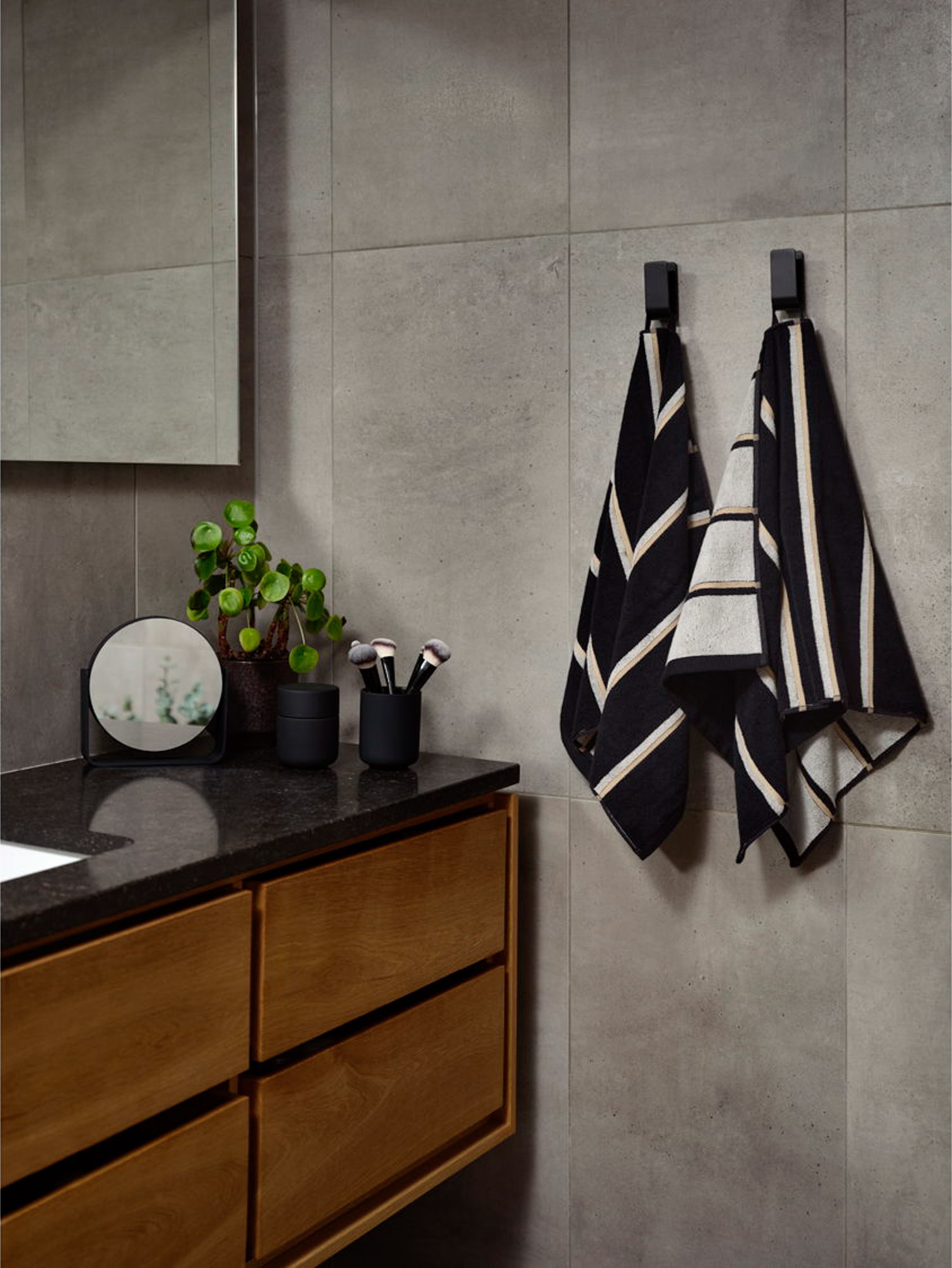Startseite »Oversættelse færdig Schwarzes Handtuch - 50x100 cm - Zone Denmark Zone Guter Preis:20,49EUR Auf Lager Anzahl In den Warenkorb Mehr dazu unter: Zone Artikelnummer:37622-3 Sehen Sie unsere große Auswahl an Badematten für den Boden Sehen Sie unsere Auswahl an Handtuchpaketen Sehen Sie unsere große Auswahl an Bademänteln für die ganze Familie Hast du Fragen zum Produkt? Art: HandtuchGröße: 50x100 cmFarbe: SchwarzMaterial: 100% Baumwolle/600 gWaschbar: 60°Trockner: Ja Zertifizierung: STANDARD 100 by OEKO-TEX® (2668CIT CITEVE) Sauna heißt die Serie – und die Streifen sprechen für sich. Die Serie ist von den klaren Linien einer klassisch mit Holz verkleideten Sauna inspiriert, wobei das Design elegant mit Perspektive und Farbkomposition spielt. Jede Seite des Handtuchs betont ihre jeweilige dominante Farbe - ein feines Detail, das Ihnen zwei verschiedene Ausdrucksformen in einem Handtuch bietetDie retroinspirierten Streifen verleihen einen grafischen, urbanen Touch, und mit einer weichen, kräftigen Qualität aus garngefärbter 600 g Baumwolle fühlt sich das Handtuch genauso hochwertig an, wie es aussieht.Wählen Sie zwischen 50 x 100 und 70 x 140 cm – und lassen Sie Sauna Ihr Badezimmer mit seinem grafischen, farbenfrohen Charakter prägen. Zurück zu Oversættelse færdig