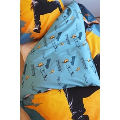 Machen Sie das Zimmer extra cool mit dieser schönen Skateboard-Bettwäsche. Das Design zeigt einen Skateboarder mitten in einem beeindruckenden Sprung, was dem Set einen dynamischen und energiegeladenen Ausdruck verleiht. Die kräftigen Farben in Gelb, Blau und Orange schaffen einen modernen Streetstyle-Look, der perfekt zu Kindern und Jugendlichen passt, die Skateboarding und actionreiche Sportarten lieben. Das Motiv verleiht dem Bett ein cooles und urbanes Erscheinungsbild, das gut in ein skater-inspiriertes Zimmer passt.