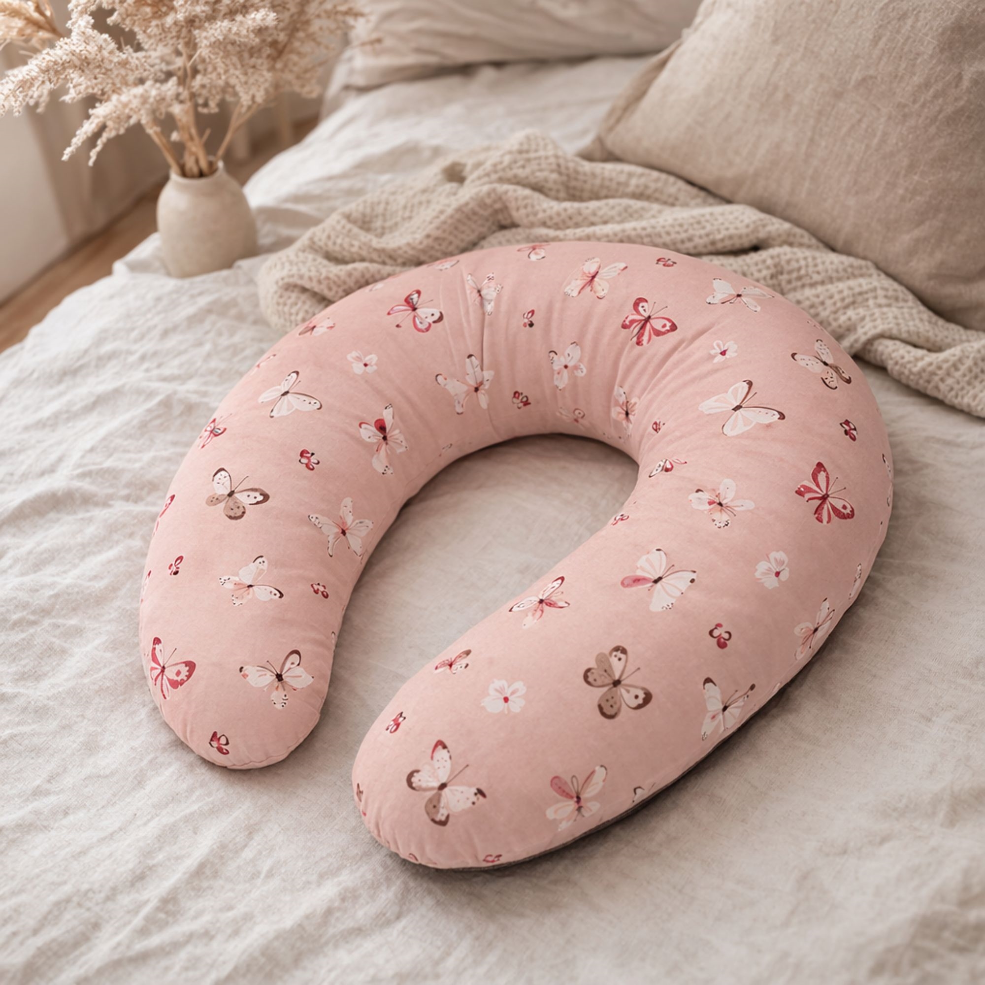 Das Stillkissen misst 60x50x10 cm und ist mit einer flexiblen Faserfüllung gefüllt, die sich dem Körper anpasst und stabilen Halt unter Armen, Schultern und Rücken bietet. Das hilft, Nacken und Lendenwirbelsäule zu entlasten und schafft eine bequemere Stillposition - sowohl beim Stillen als auch beim Füttern mit der Flasche.