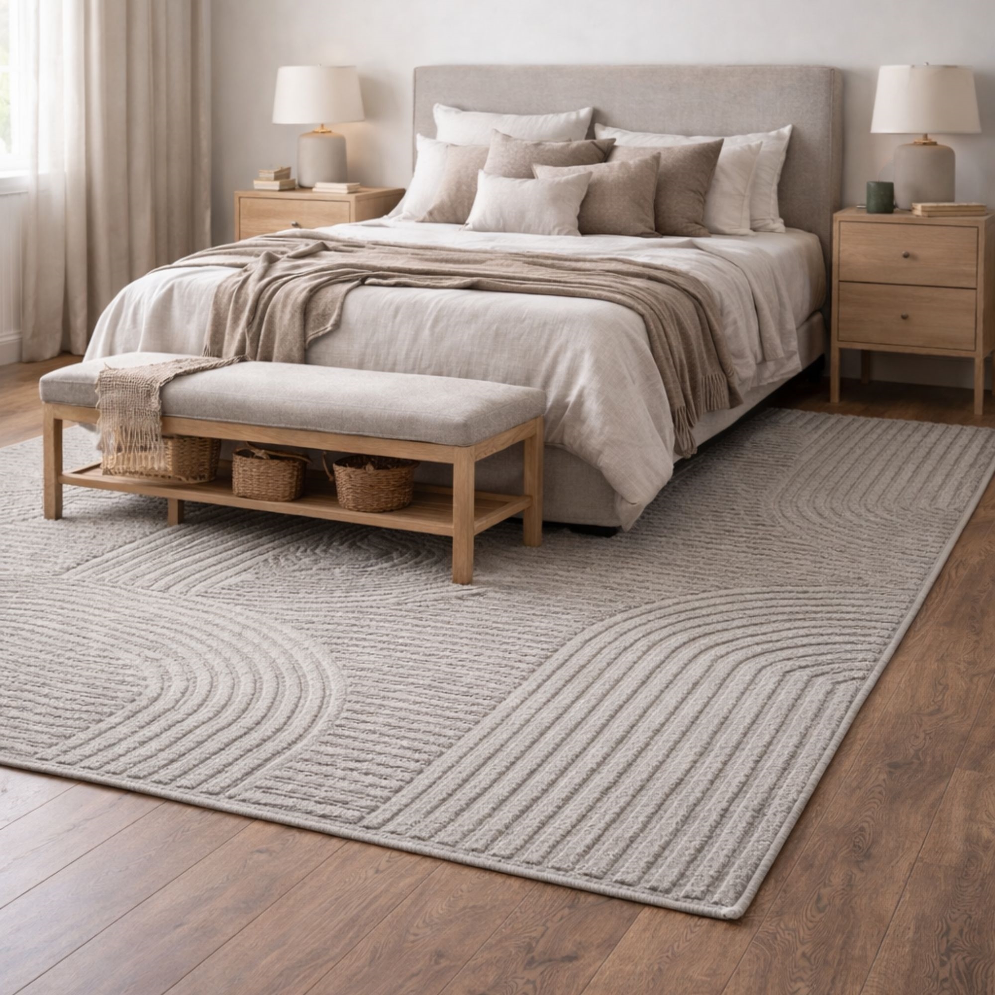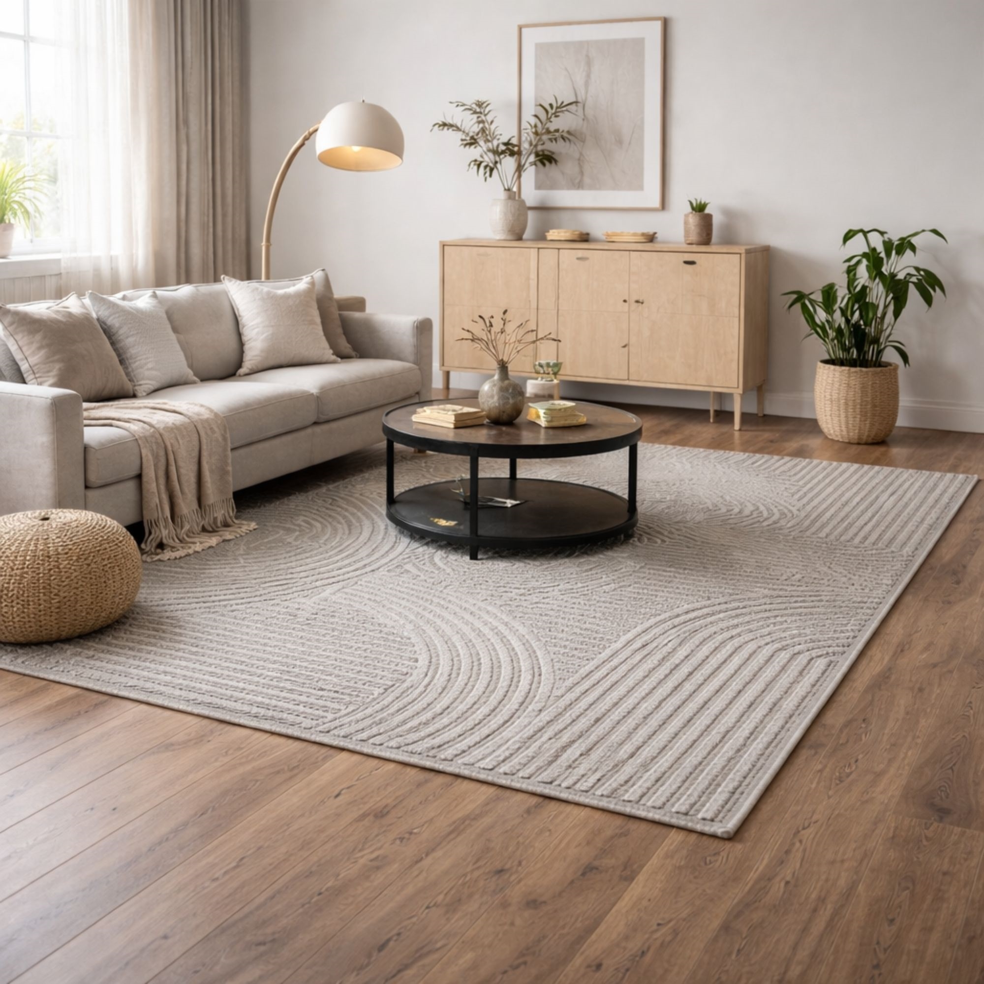 Startseite »Inneneinrichtung » Dekorationen » Teppiche Teppich - 140x200 cm - Gewebt - Grau mit Muster - Elio - Nordstrand Home Sparen17% Nordstrand Home 162,99135,99EURSparen 27,- Kostenloser Versand für diesen ArtikelAuf Lager Anzahl In den Warenkorb Mehr dazu unter: Nordstrand Home Artikelnummer:TA1042-3 Sehen Sie unser großes Sortiment an künstlichen Pflanzen und Blumen Sehen Sie unser Sortiment an Fußmatten Sehen Sie unser großes Sortiment an allem für Ihre Wohnraumgestaltung Hast du Fragen zum Produkt? Schöner Teppich mit dichter Webung und ansprechender StrukturPerfekt für Flur, Wohnzimmer oder SchlafzimmerElegantes Ton-in-Ton-Design mit weichen Formen Typ: Kurzflor-Teppich Größe: 140x200 cm Dicke: 14 mm Farbe: Grau einfarbig Design: Elio Material: 50% PP (Polypropylen) und 50% PES (Polyester) Rückseite: Jute Verwendung: Innenbereich Marke: Nordstrand Home Anzahl Punkte/m2/dicht gewebt: 204.000 Empfohlene Pflege: Staubsaugen & feuchtes Tuch Suchen Sie nach einer einfachen und unkomplizierten Möglichkeit, Ihrem Zuhause ein stimmiges Gesamtbild zu verleihen? Dann kann dieser schöne Teppich das Element sein, das Ihre Einrichtung zusammenhält. Dieser ansprechende, moderne Teppich kann das gesamte Erscheinungsbild eines Raumes heben – unter anderem deshalb, weil er Komfort, Strapazierfähigkeit und ein stilvolles, grafisches Design in einer Lösung vereint. Das grau Ton‑in‑Ton‑Muster mit weichen, organischen Bögen peppt das Zuhause auf und passt perfekt zu nordischer und minimalistischer Einrichtung. Die graue Nuance verleiht dem Raum ein helles und einladendes Erscheinungsbild und harmoniert gut mit allem von hellen Holzsorten und beigen Tönen bis hin zu kontrastreicheren Umgebungen. Ein Teppich, der sich sowohl für Diele, Flur, Wohnzimmer als auch neben dem Bett eignet, wo Sie eine weiche und angenehme Oberfläche wünschen. Die kurz- bis mittellange Florqualität macht den Teppich leicht zu pflegen, da Staub und Schmutz schwer in die Fasern eindringen. Regelmäßiges Staubsaugen genügt, um das schöne Aussehen zu erhalten. Mit diesem schönen Teppich erhalten Sie also ein Produkt, das sowohl elegant als auch strapazierfähig ist und modernes Design mit Komfort kombiniert – ideal für alle, die einen dekorativen und praktischen Teppich für die kleineren Bereiche des Zuhauses suchen. Sehen Sie hier unser großes Sortiment an verschiedenen Wohntextilien Mit Nordstrand Home sind Sie sicher Wohntextilien im dänischen Design – im nordischen Stil. Nordstrand Home legt großen Wert auf das Wohlbefinden in einer schönen, zugleich entspannten Umgebung. Mit Nordstrand Home müssen Sie keine Kompromisse eingehen; Sie finden stets Produkte in klassischen und modischen Farben. Nordstrand Home – So fühlen Sie sich zu Hause! Zurück zu Teppiche