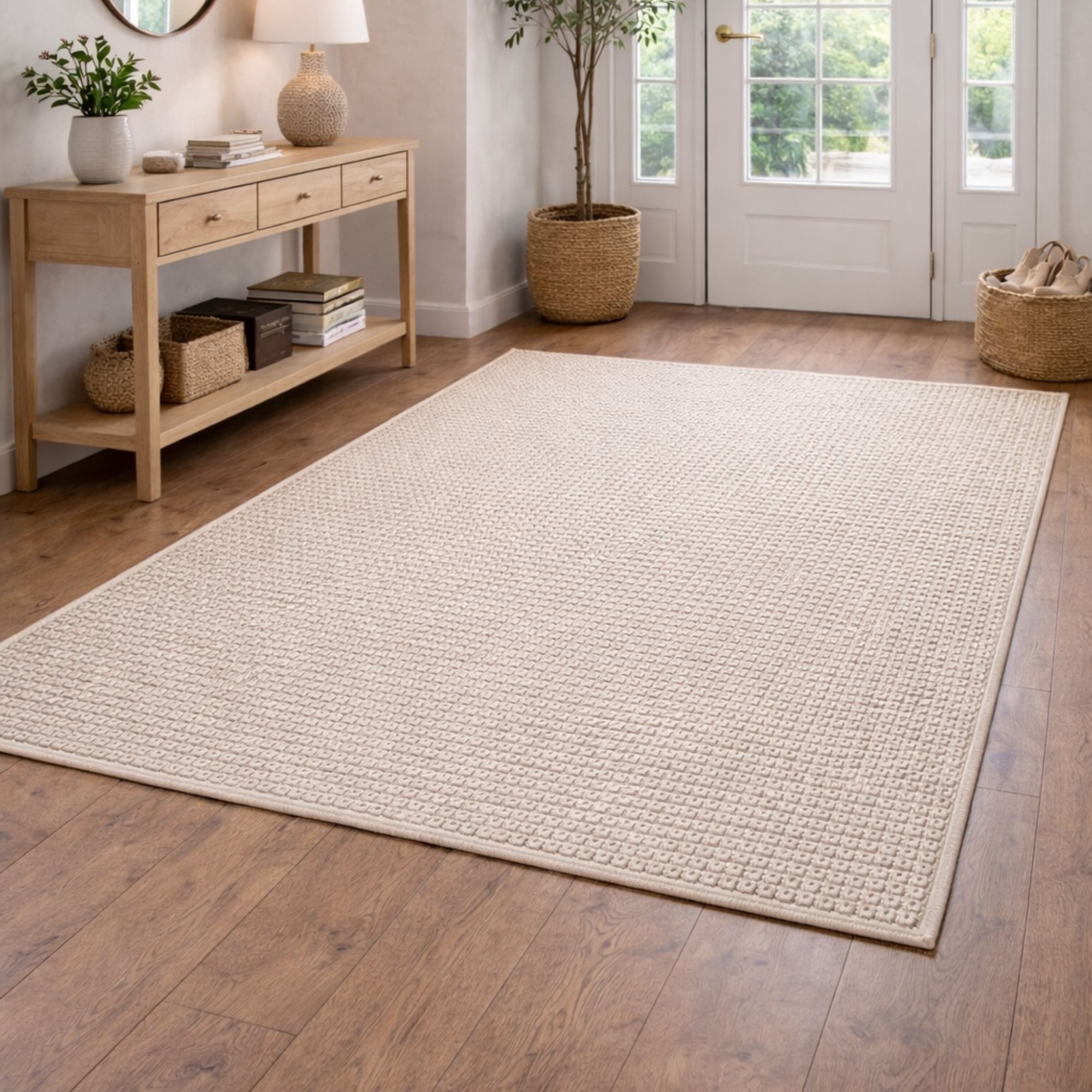 Suchen Sie eine einfache und unkomplizierte Möglichkeit, in Ihrem Zuhause für Harmonie zu sorgen? Dann kann dieser schöne Teppich das Element sein, das die Einrichtung zusammenführt. Eleganter beiger Teppich, der die perfekte Wahl ist, wenn Sie ein zeitloses Design wünschen, das etwas zusätzliche Eleganz in Ihr Zuhause bringt. Die feine Struktur und die helle, natürliche Farbe verleihen dem Raum einen harmonischeren Ausdruck, der in jedes Zuhause passt. Der Teppich ist ideal im Wohnzimmer unter dem Couchtisch, im Schlafzimmer oder als weiches und einladendes Element im Eingangsbereich. Der Teppich ist aus einem strapazierfähigen und praktischen Material gefertigt. Dadurch ist er widerstandsfähig gegenüber täglicher Nutzung und für Räume mit Aktivität geeignet. Er sorgt außerdem dafür, dass der Teppich besser an seinem Platz liegt. Sie erhalten einen Teppich, der sowohl funktional als auch über viele Jahre hinweg attraktiv bleibt. Mit einem Helsinki-Teppich werden Komfort, Haltbarkeit und nordisches Design in einer Lösung kombiniert – eine sichere Wahl, wenn Sie einen Teppich wünschen, der sowohl praktisch als auch ästhetisch ansprechend ist. Sie finden den schönen Teppich in mehreren verschiedenen Größen und Farben, je nachdem, was am besten in Ihr Zuhause passt. Alle Teppiche sind mit STANDARD 100 by OEKO-TEX® zertifiziert, was bedeutet, dass der Teppich auf schädliche Stoffe getestet wurde. Ihre Sicherheit für ein Produkt ohne gesundheitsschädliche Chemie – und ein gesünderes Raumklima in Ihrem Zuhause.
