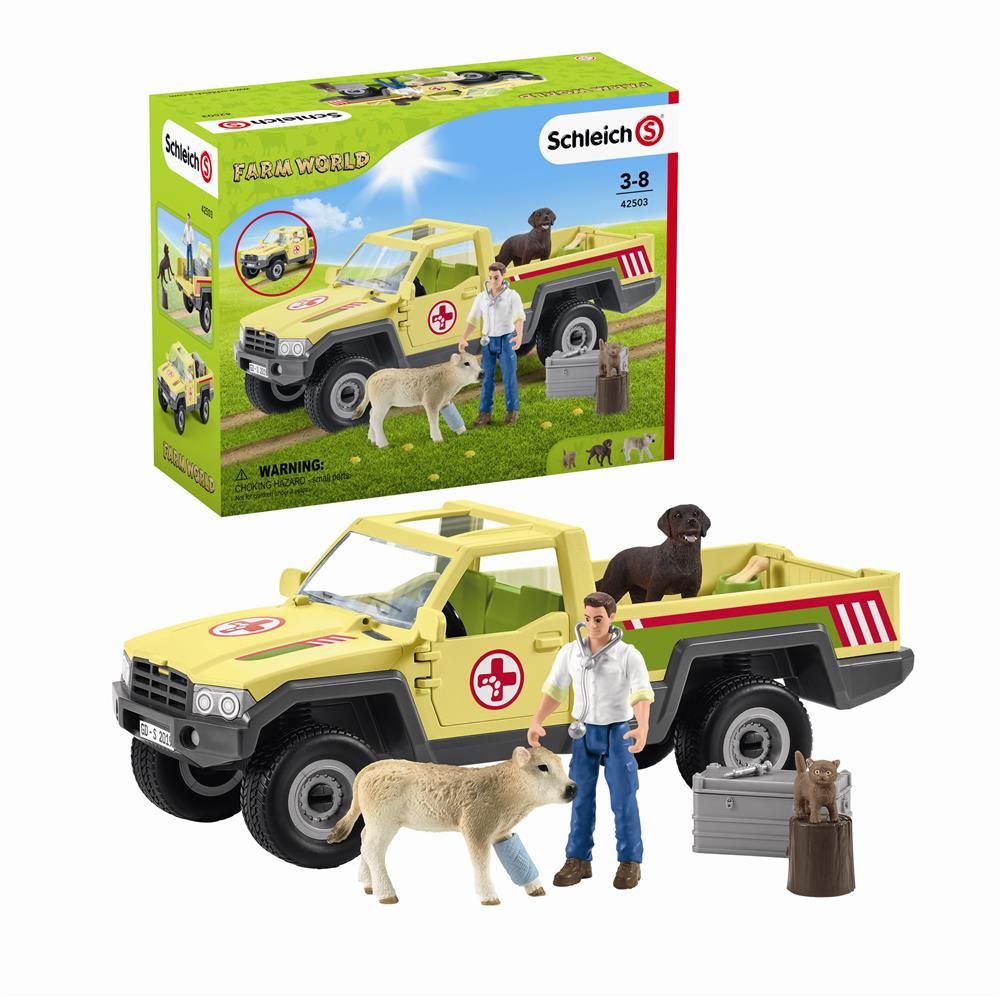 Startseite »Spielzeug » Andere marken » Schleich » Alle Schleich Produkte Tierarztbesuch auf dem Bauernhof - Schleich Schleich Guter Preis:61,49EUR Nur noch wenige auf Lager Anzahl In den Warenkorb Mehr dazu unter: Schleich Artikelnummer:LEGMAK-42503 Hast du Fragen zum Produkt? Auf dem Bauernhof hat sich ein kleines Kalb das Bein verstaucht. Der Tierarzt springt sofort in seinen Pick-up. Zusammen mit seinem Labrador und der kleinen Katze fährt er zum Hof. Der Tierarzt hat immer seinen Erste-Hilfe-Koffer und Medikamente auf der Ladefläche seines Pick-up. Dem Kalb wird sofort ein Verband angelegt, und der Tierarzt nimmt das Tier mit zurück zu seiner Praxis. Nachdem Röntgenaufnahmen gemacht wurden, kann sich das Kalb ausruhen, bevor die Fahrt zurück zum Bauernhof geht. Zurück zu Alle Schleich Produkte