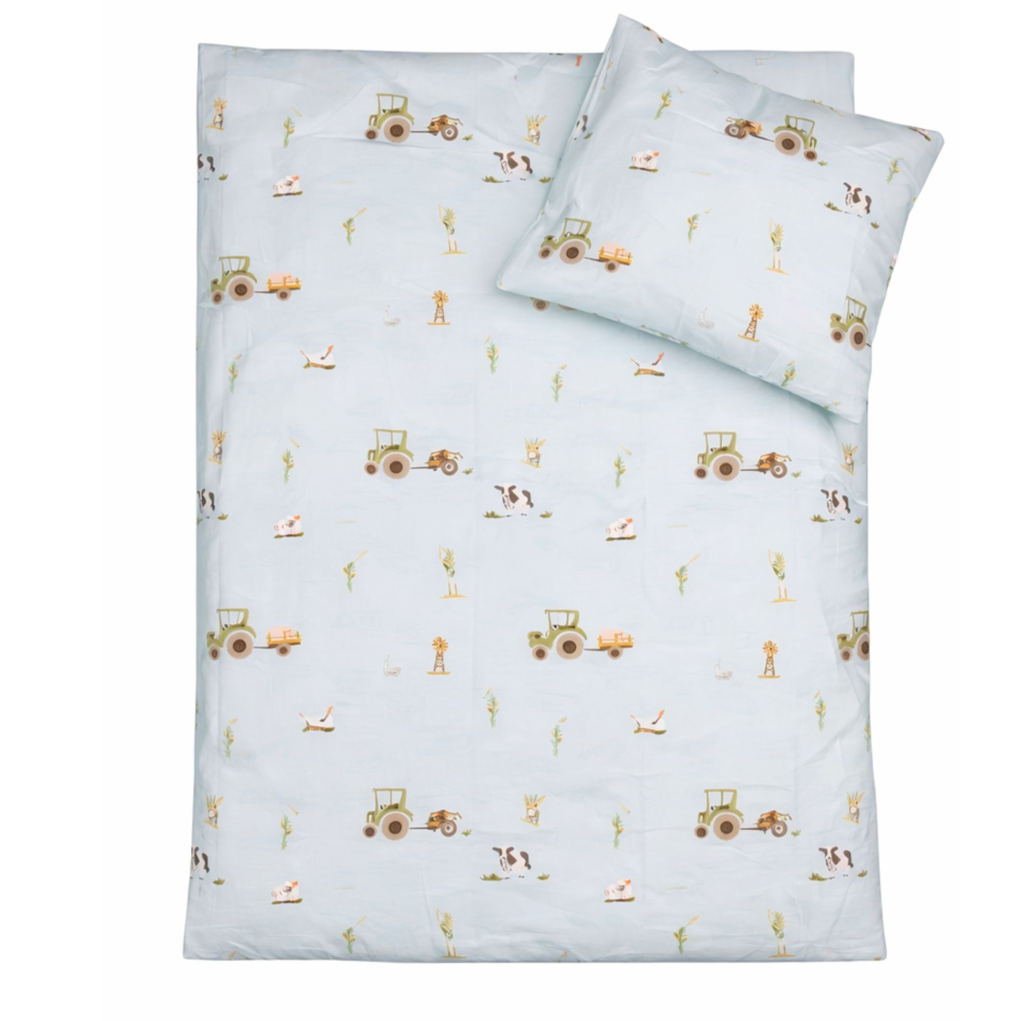 By Mats Baby-Bettwäsche 70x100 cm - hellblau mit Traktor und Kühen