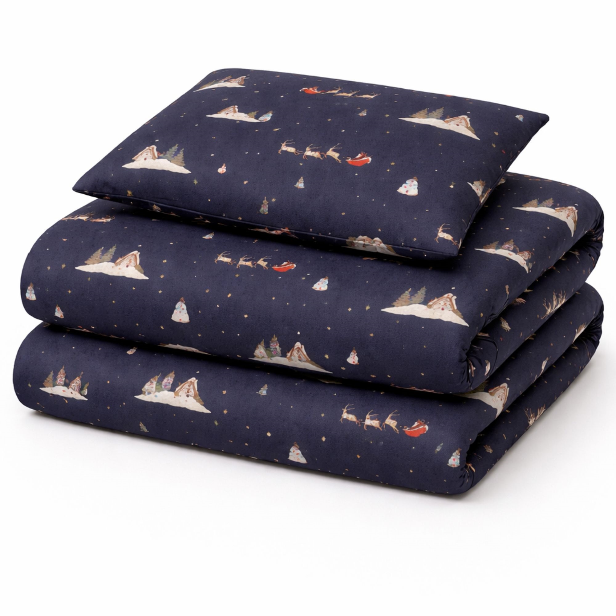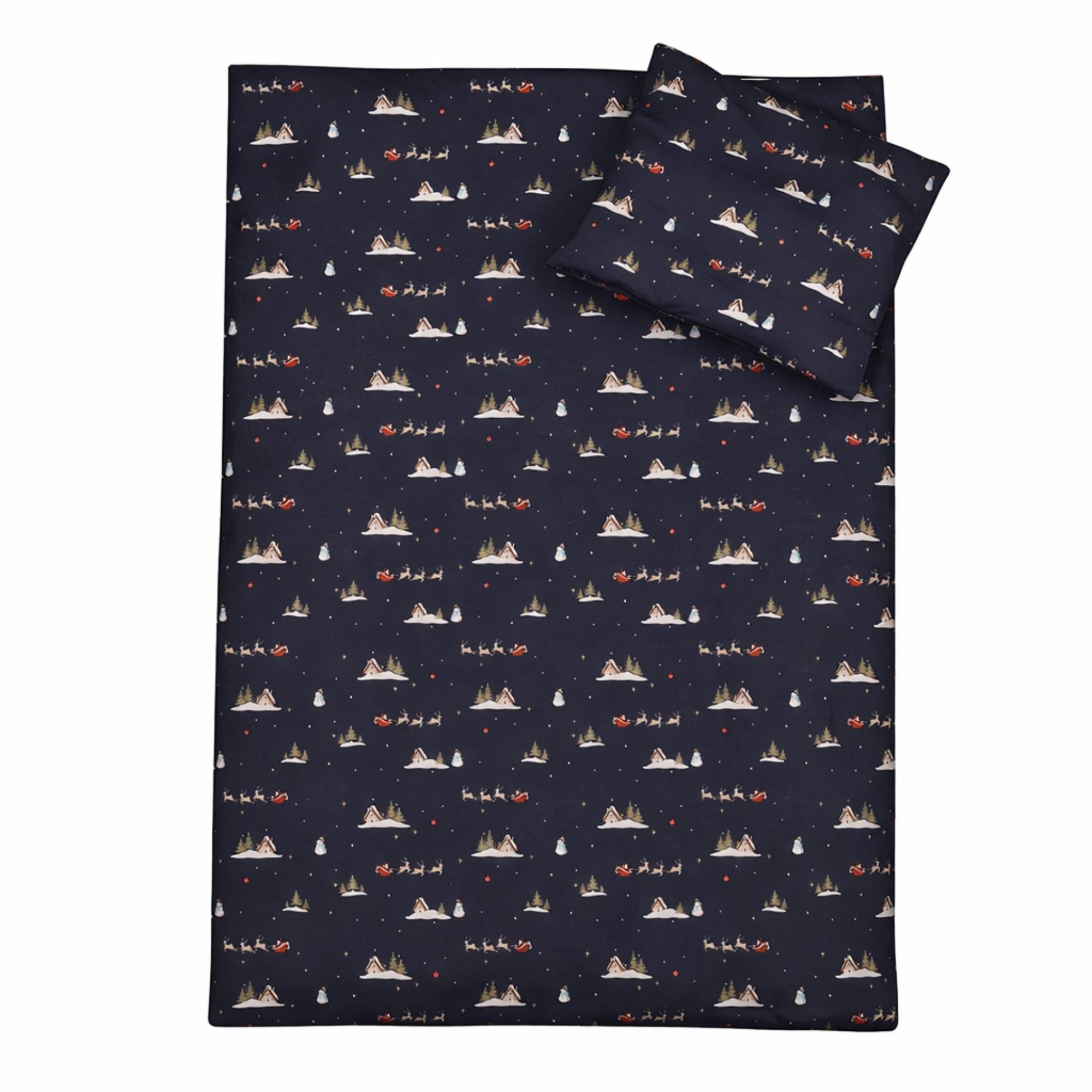 By Mats Weihnachts-Babybettwäsche 70x100 cm - Dunkelblau mit Weihnachtsmännern und Rentieren