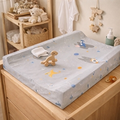 Schaffen Sie einen sicheren und komfortablen Wickelplatz mit diesem Wickelkissen von Nordstrand Home im dezenten grauen Design mit Raumdinosaurier. Das Wickelkissen misst 65x50 cm und passt auf die meisten Wickeltische und Kommoden. Die erhöhten Kanten von 9 cm und die 4 cm dicke Mitte bieten zusätzliche Stütze und helfen, das Kind während des gesamten Wickelvorgangs sicher zu halten.