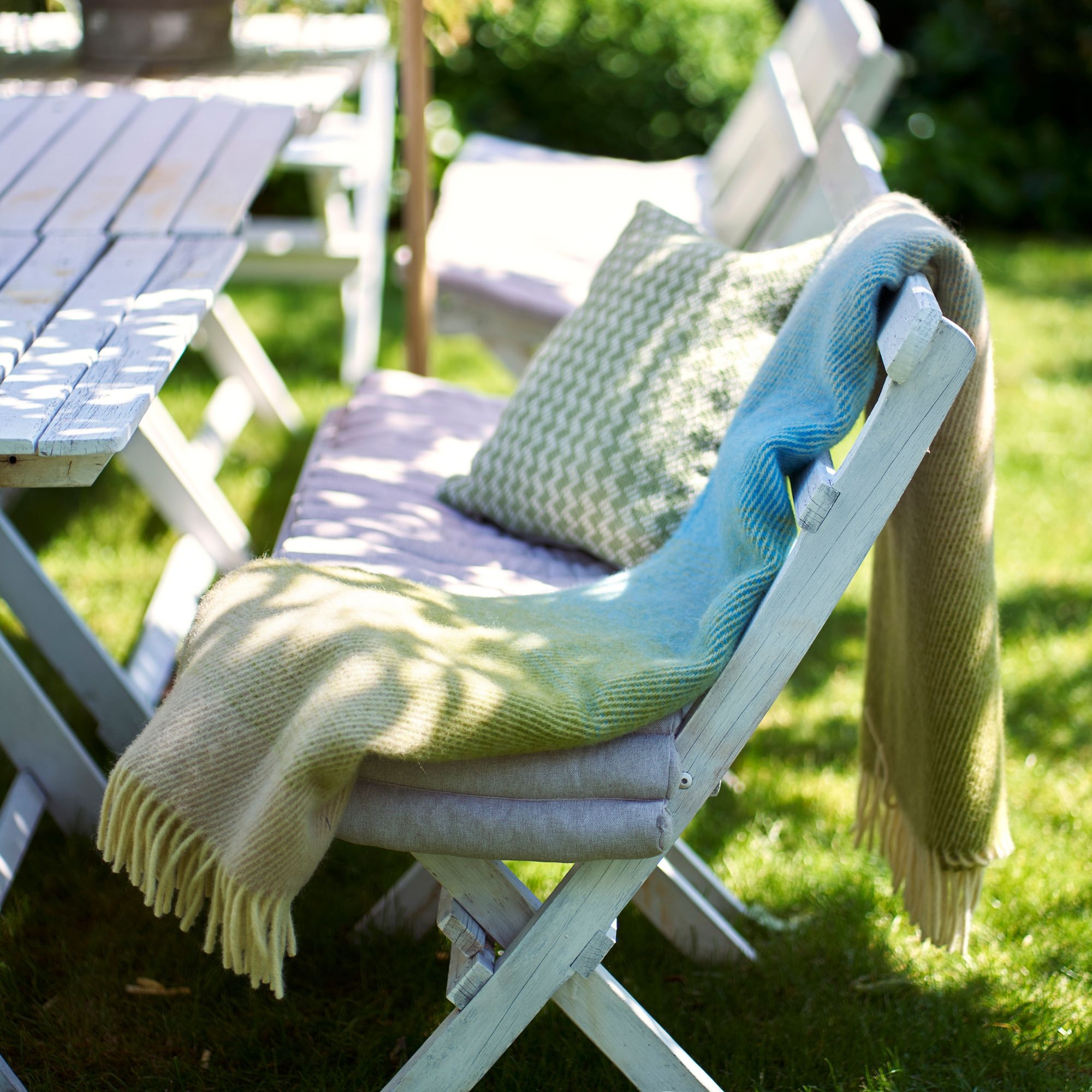Wollplaid in Grün und Blau - weicher Komfort in einem farbenfrohen Design